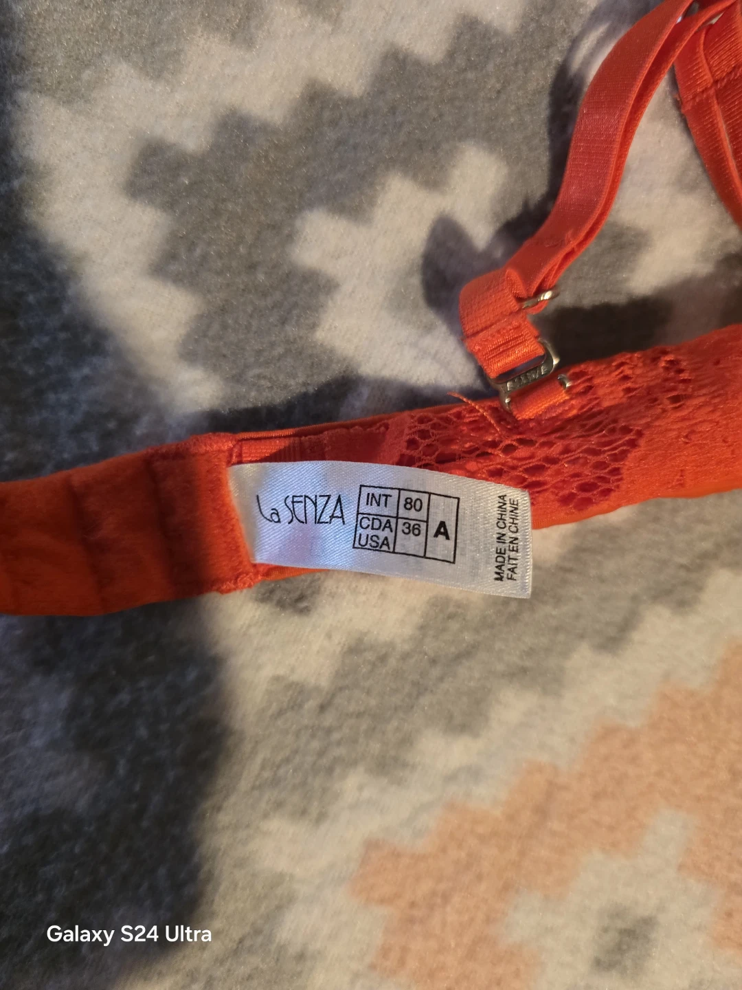 Selling a La Senza bra in a vibrant orange colour! The size is 36A, perfect for a comfortable and stylish fit. It's in great condition and ready for a new home!