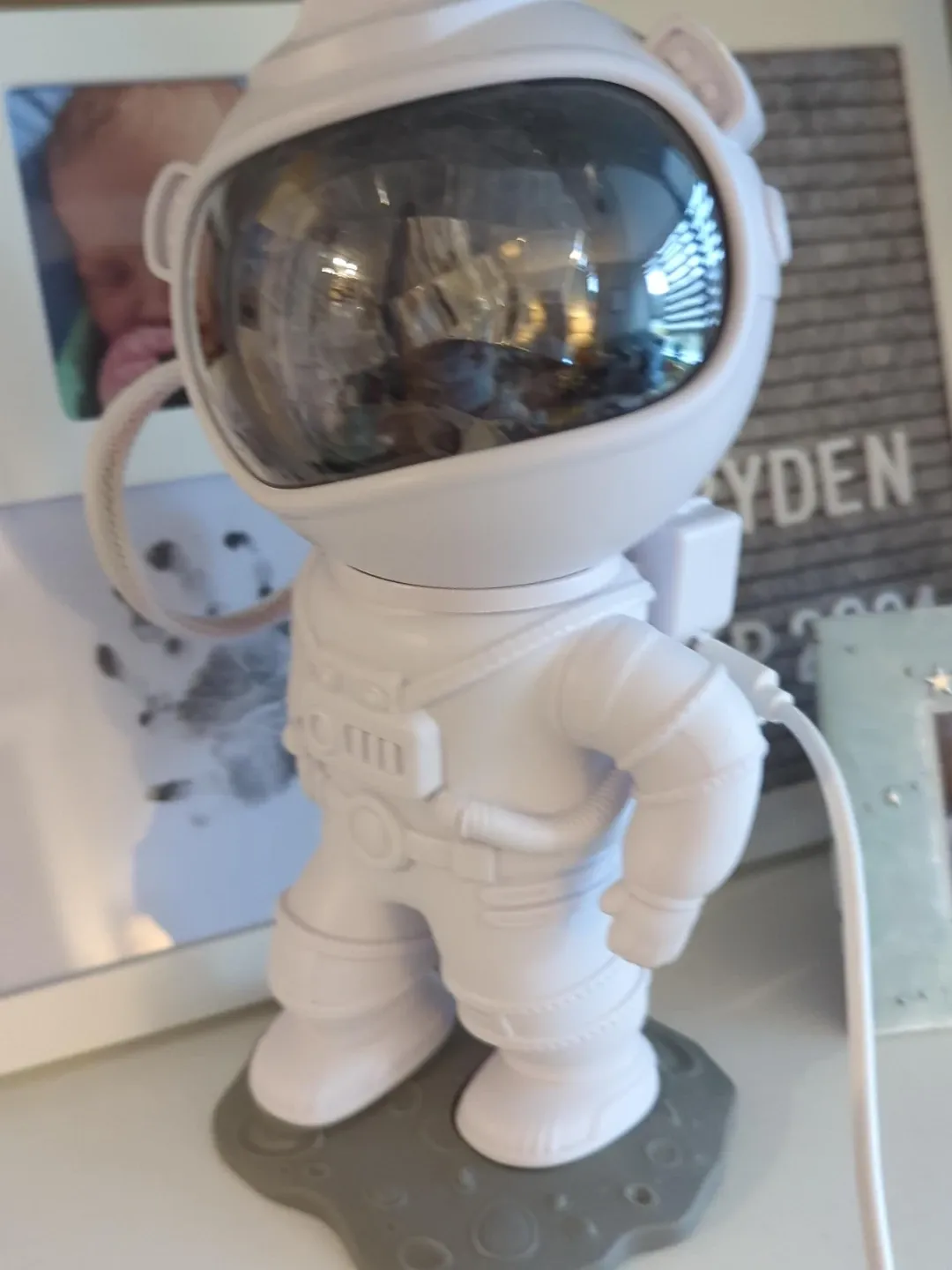 This astronaut projector night light is perfect for adding a fun and calming atmosphere to any room! It's in great condition and ready to light up your space