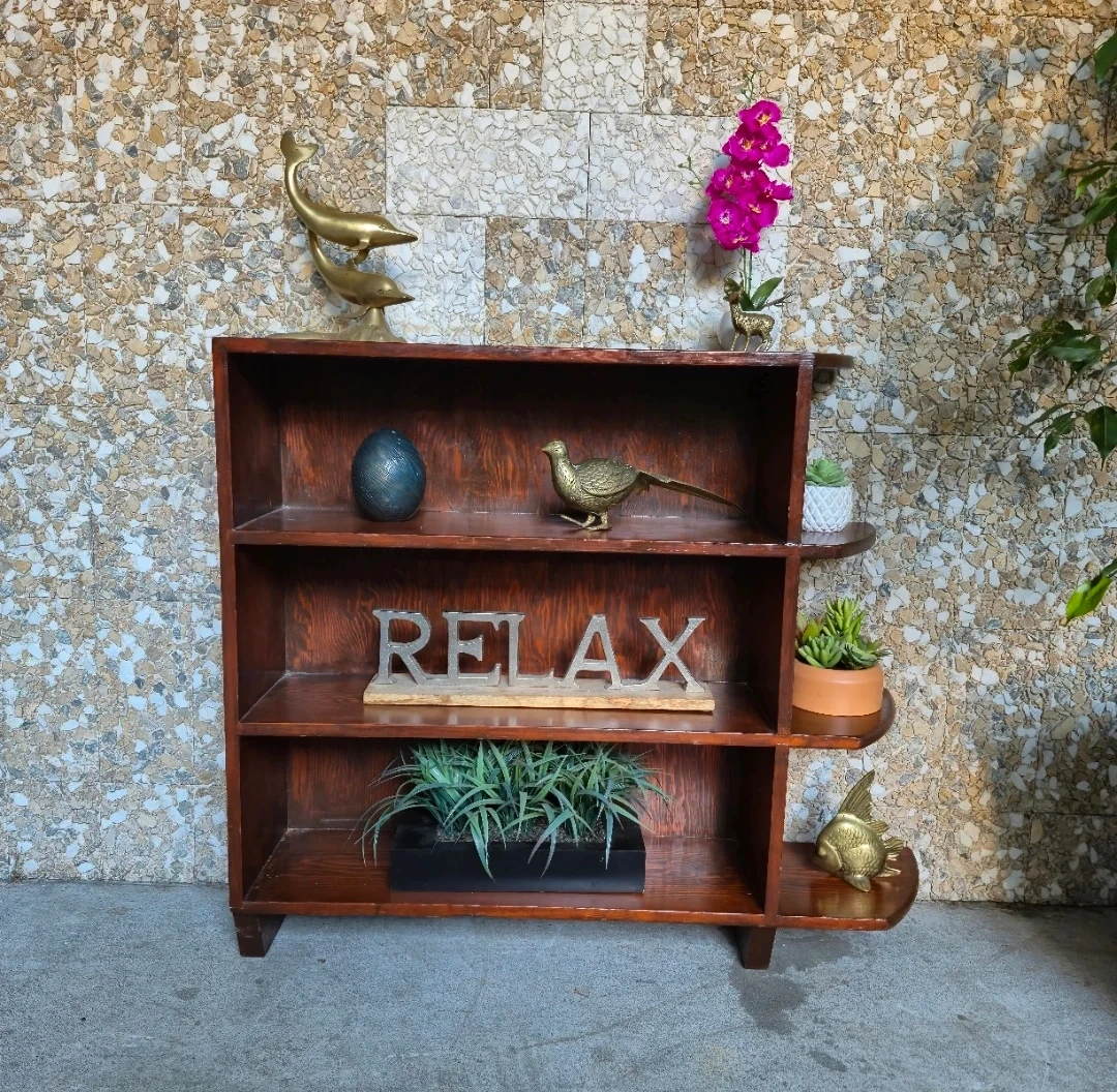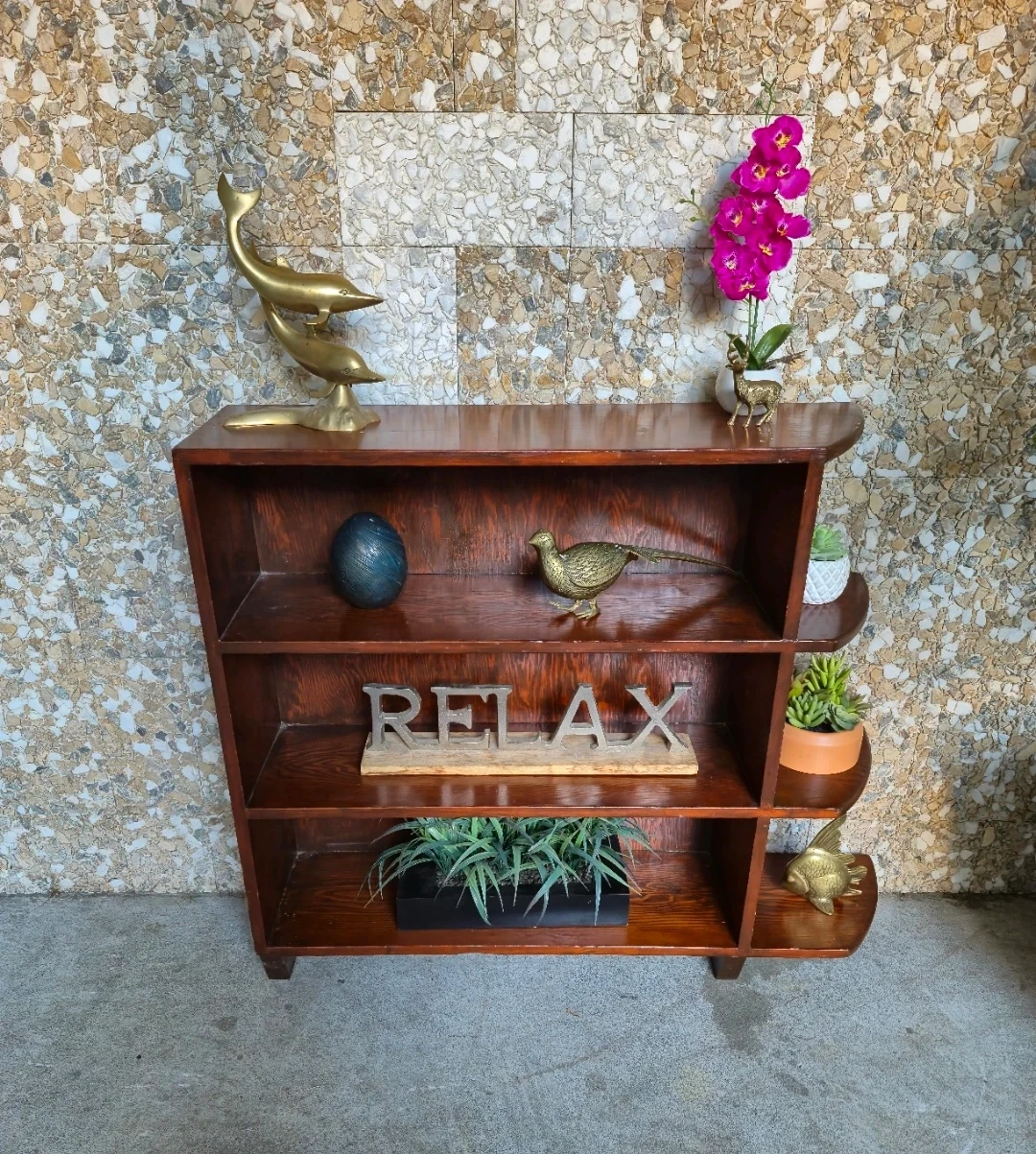 99Beautiful handcrafted vintage wooden shelf with a unique side display design. Perfect for books, plants, or home décor. 41w x 10d x 34.5h Pick up in downtown Vancouver or delivery may be arranged for a reasonable fee. Priority is given to those who are able to pick up. Follow us on Instagram to enjoy an exclusive discount on select furniture items: https://www.instagram.com/vanvaluevintage Tags: mcm mid century modern retro vintage antique 1940s 1950s 1960s 1970s sixties teak walnut liquor cabinet shelf shelves shelving unit tv film set dec bookcase display cabinet buffet server sideboard Hutch credenza Scandinavian Danish Denmark Sweden Norway west elm pottery barn crate and barrel structube article cb2 eq3 scandesign