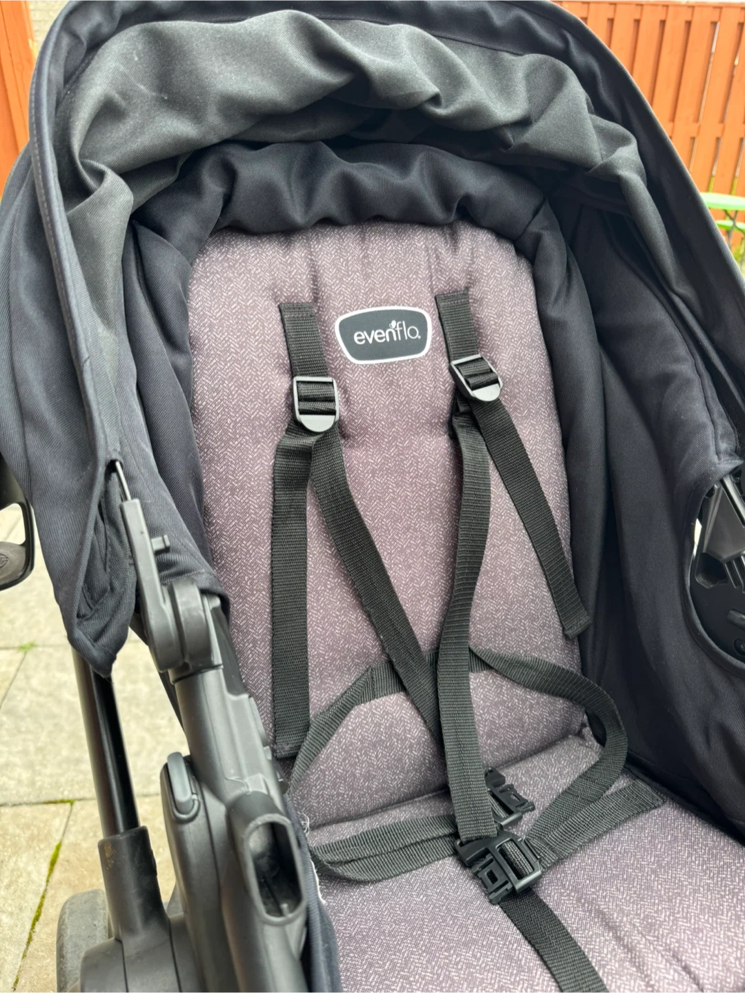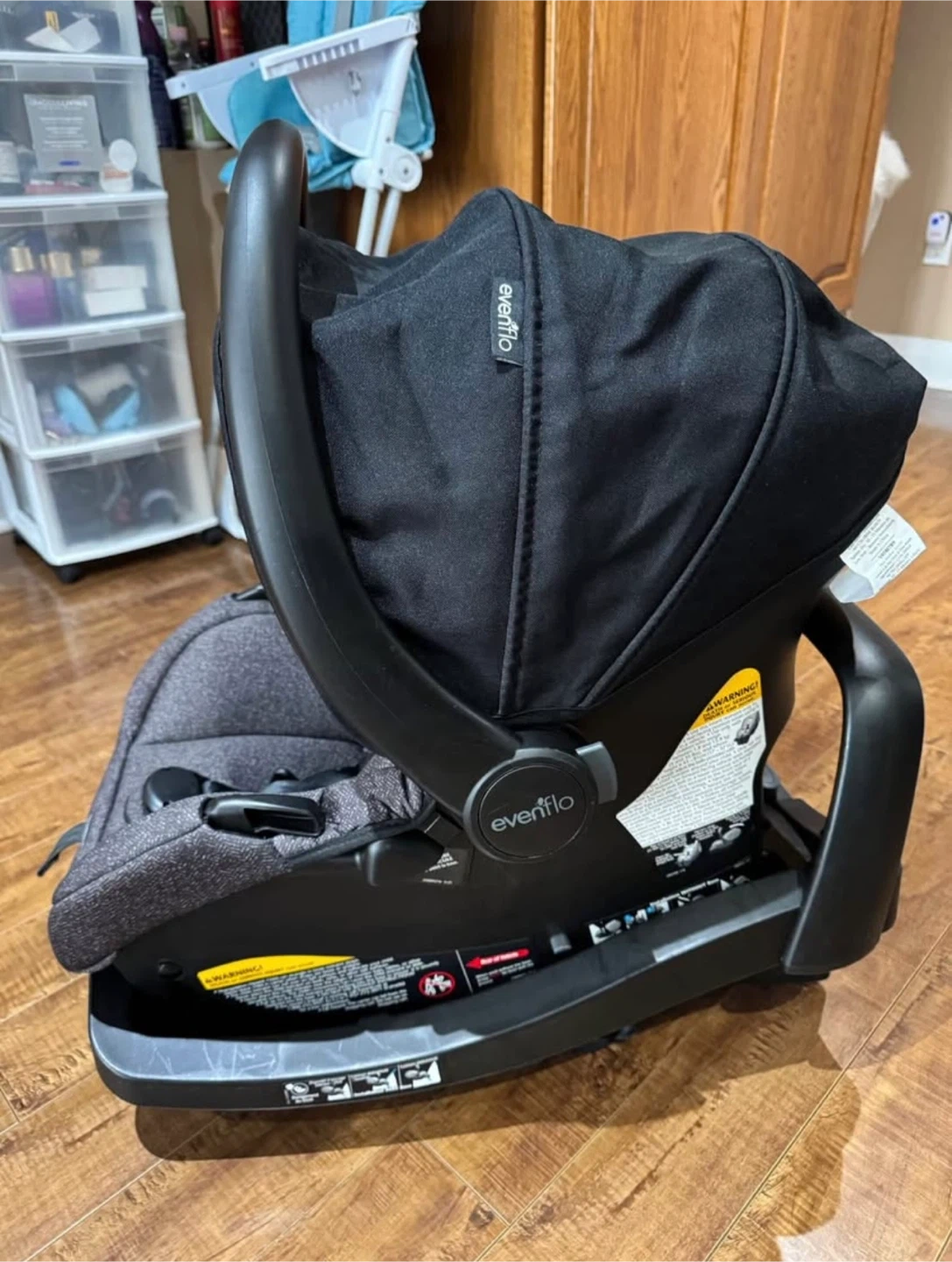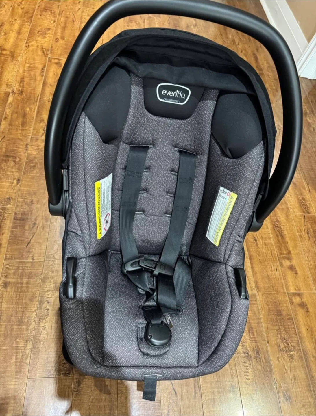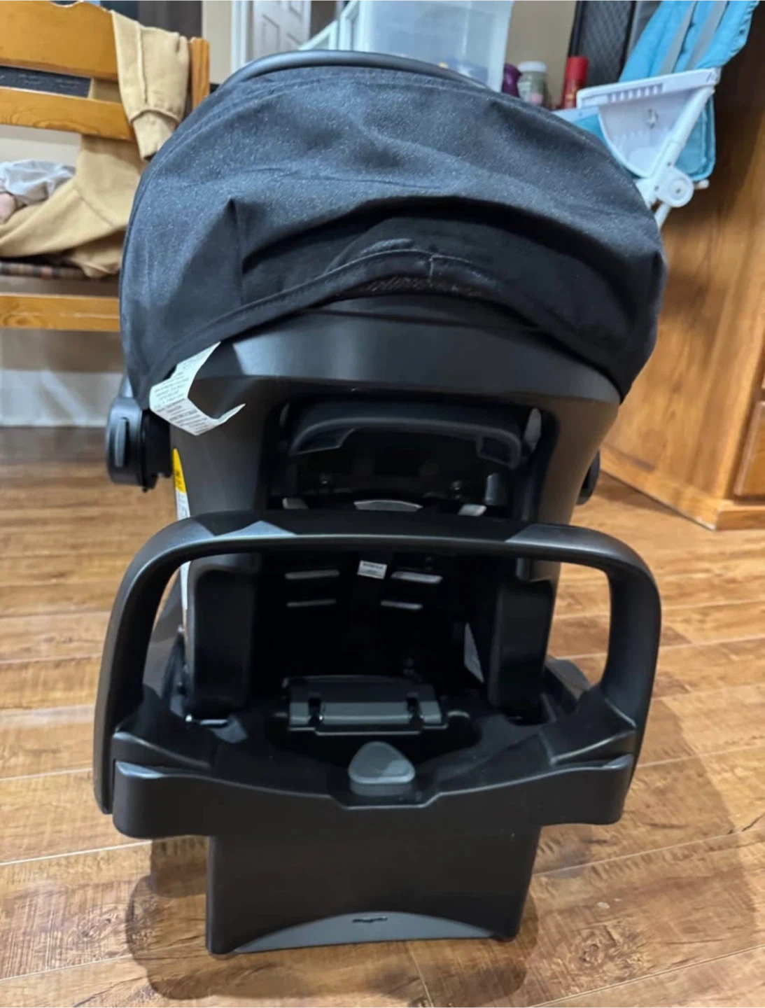 It's black and ready for a new little one. Perfect for keeping your baby safe and comfy on the go