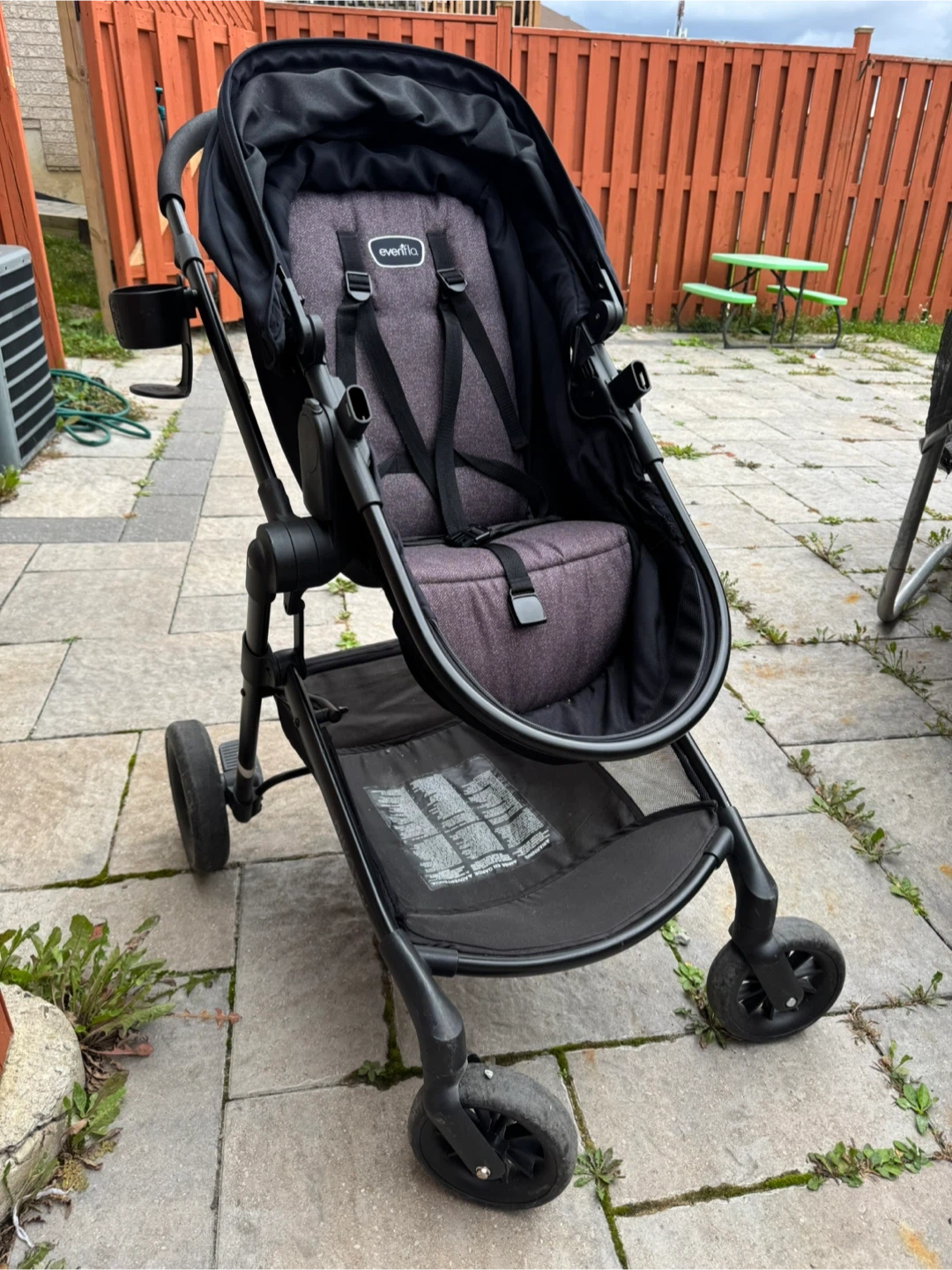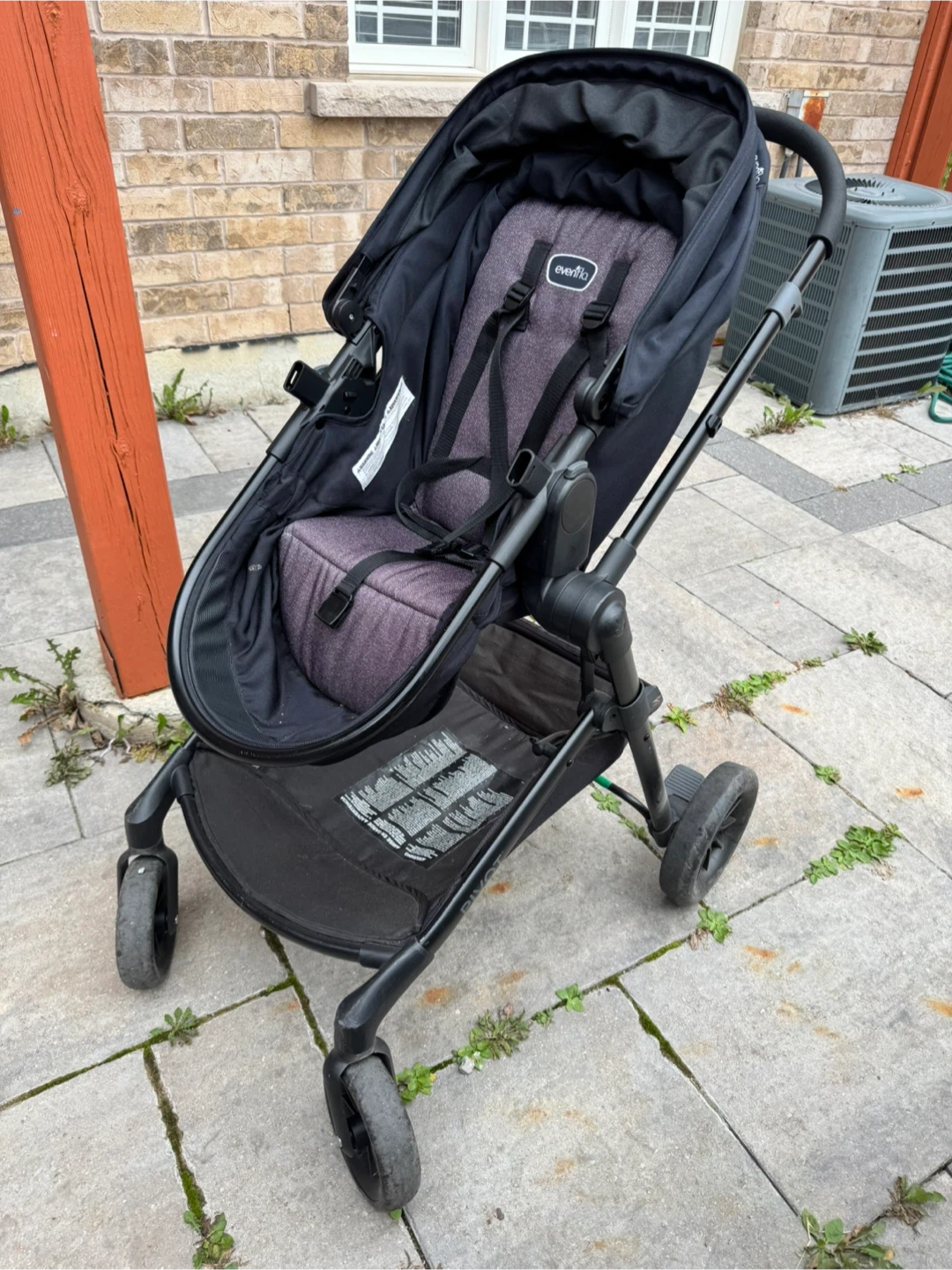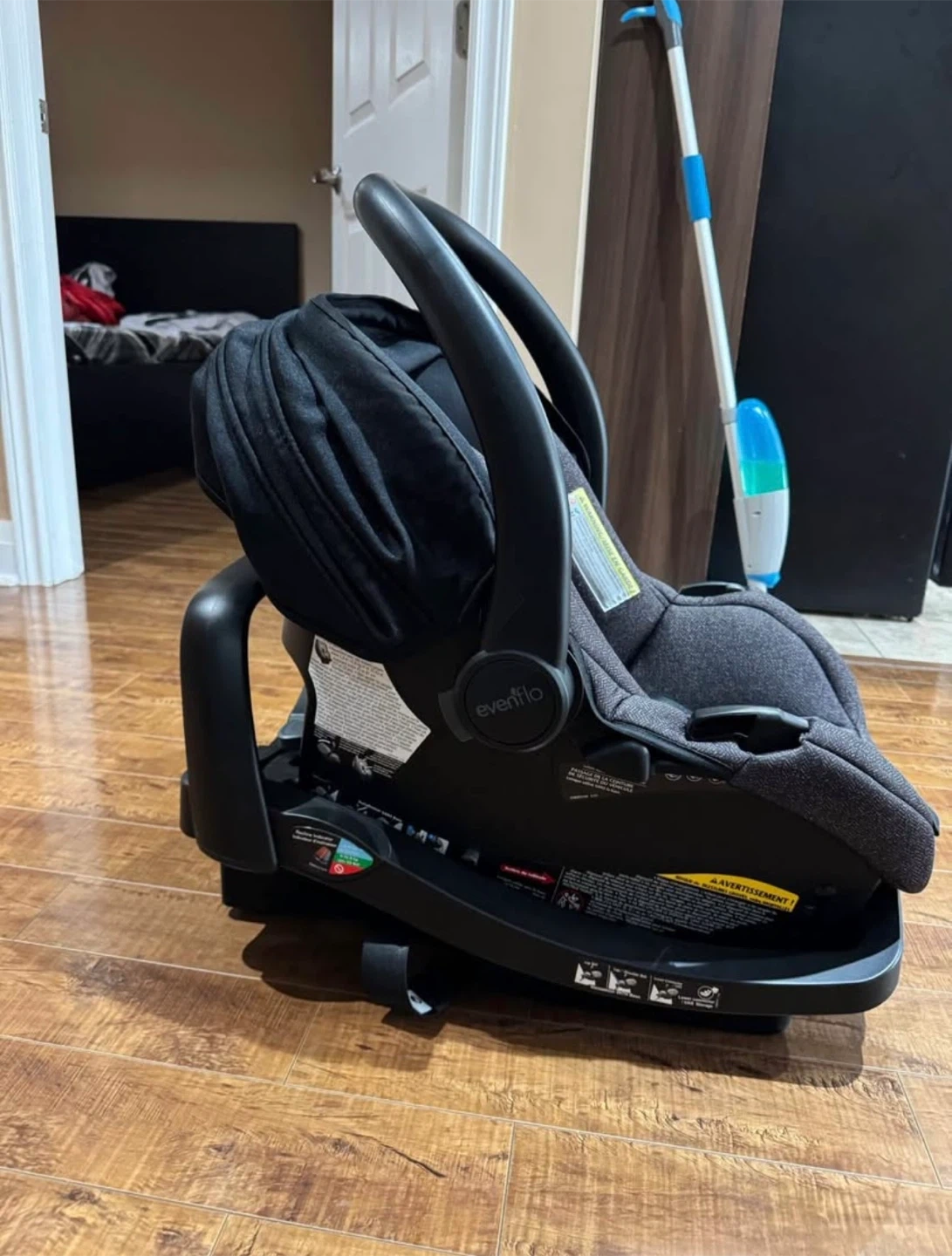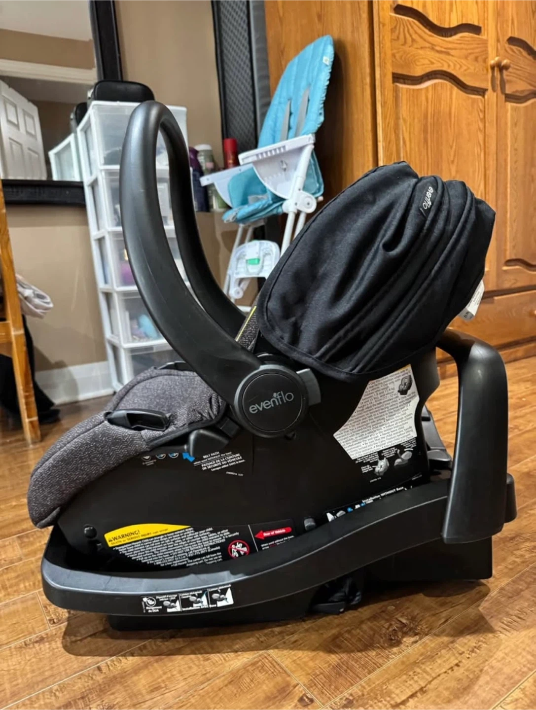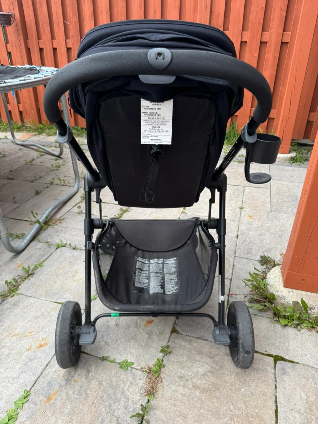 It's black and ready for a new little one. Perfect for keeping your baby safe and comfy on the go