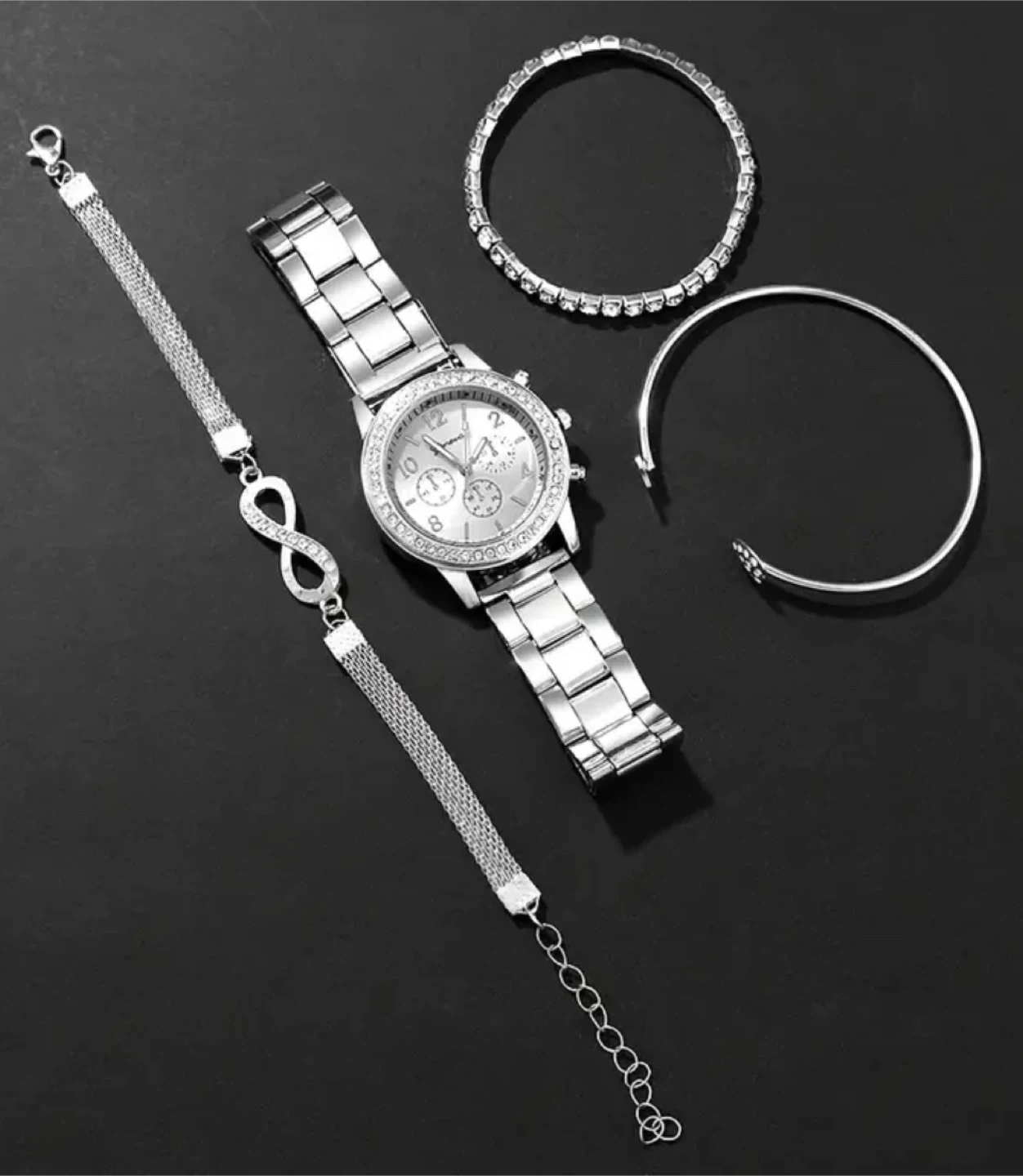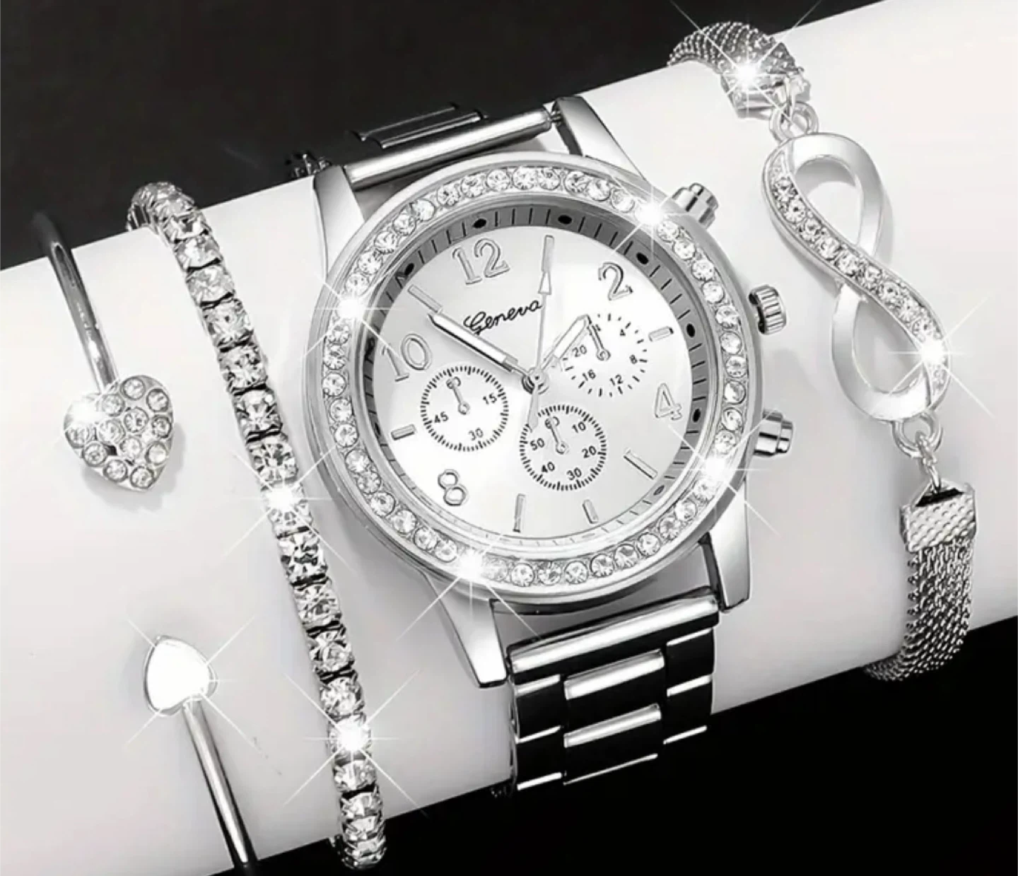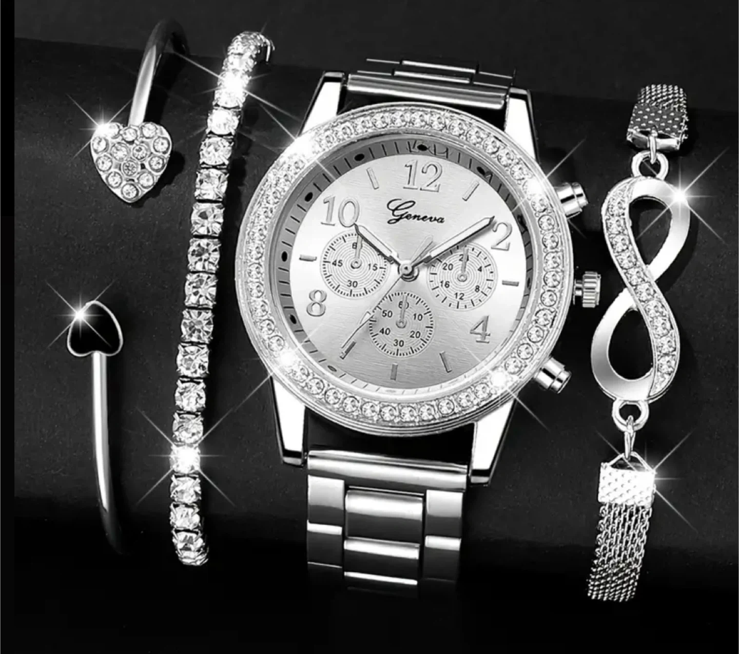 New Geneva Silver Watch & Bracelet Set