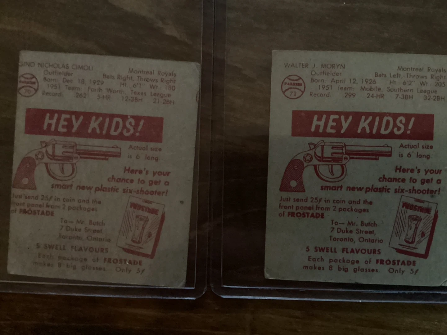8. 1952 FROSTADE Toronto Maple Leafs & Montreal Royals Cards