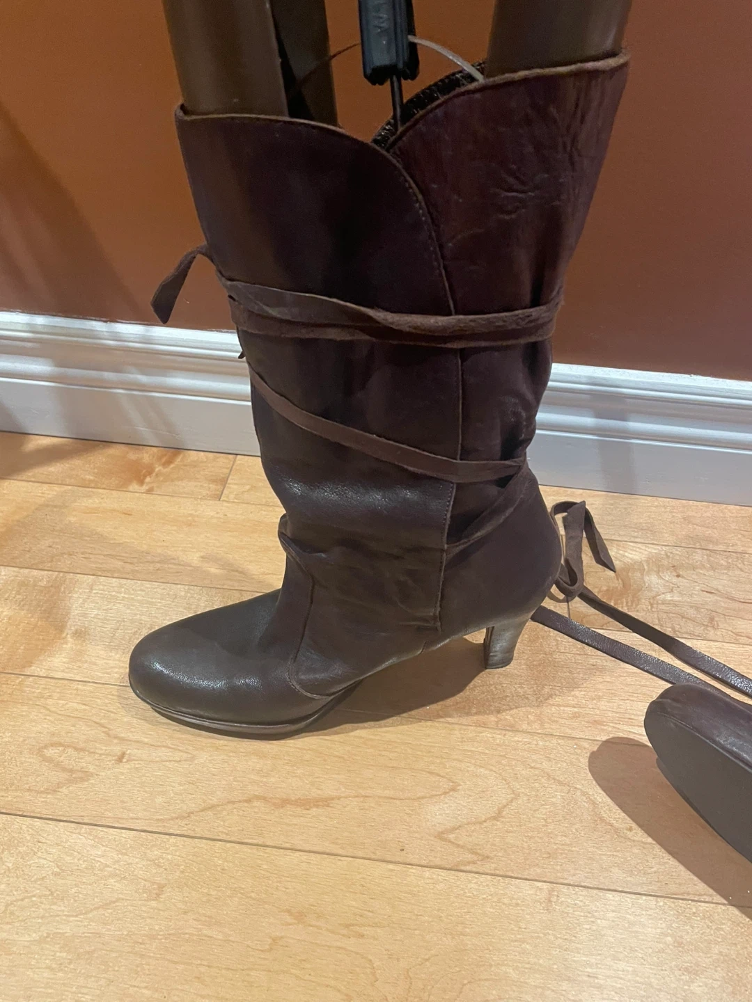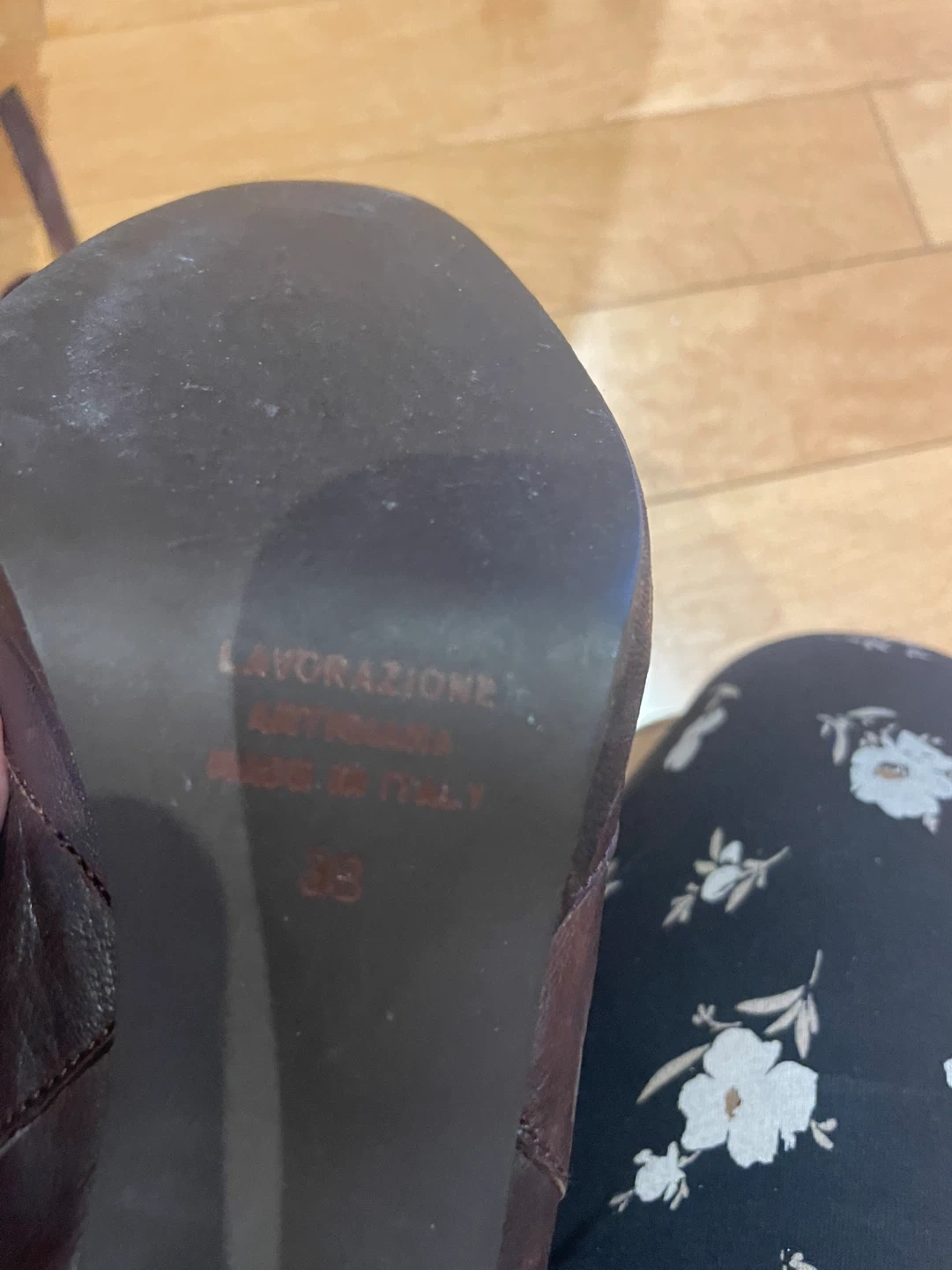 26Selling a pair of leather boots, made in Italy. The size is 38. They have a nice heel and tie detailing.