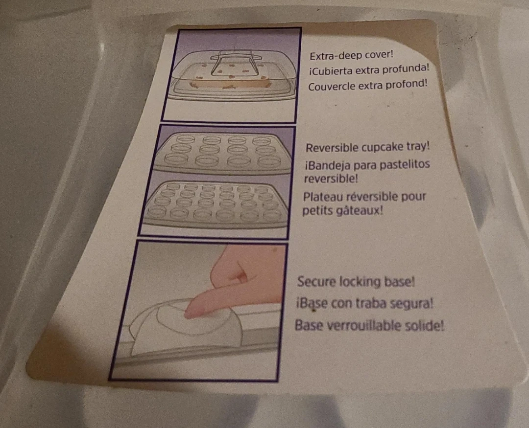 Selling a cake carrier. It has an extra-deep cover and a secure locking base. It also includes a reversible cupcake tray, perfect for transporting your baked goods safely and stylishly
