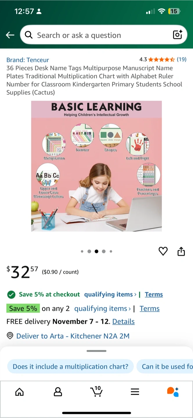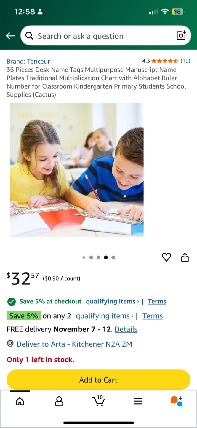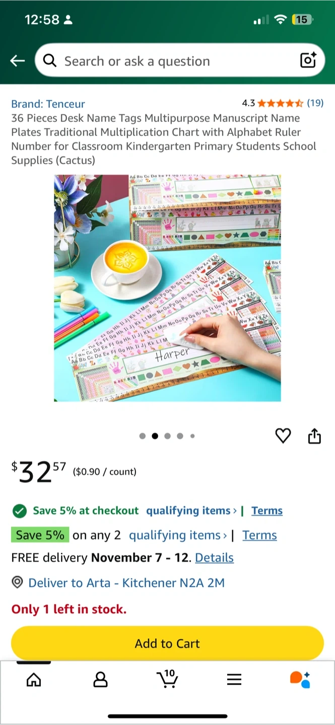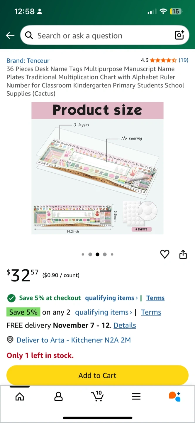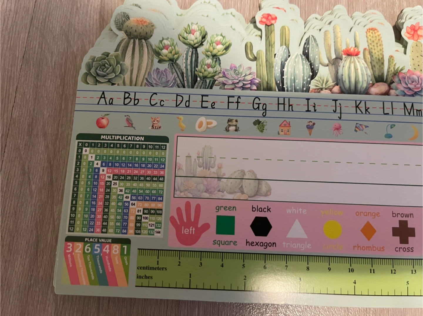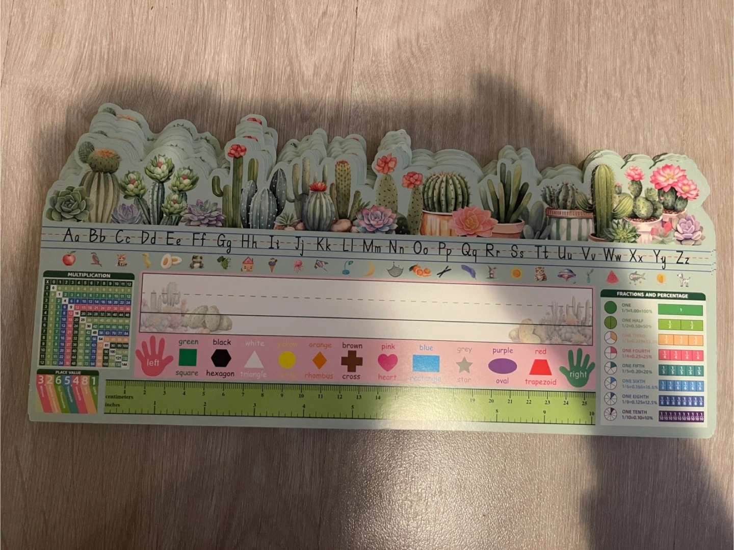 25brand new desk name plate tags feature a cute cactus theme, perfect for adding a touch of fun to any student's desk! They include a traditional multiplication chart, alphabet ruler, and number line, making them a practical and educational tool for classroom or home use. Originally bought for $32.57!