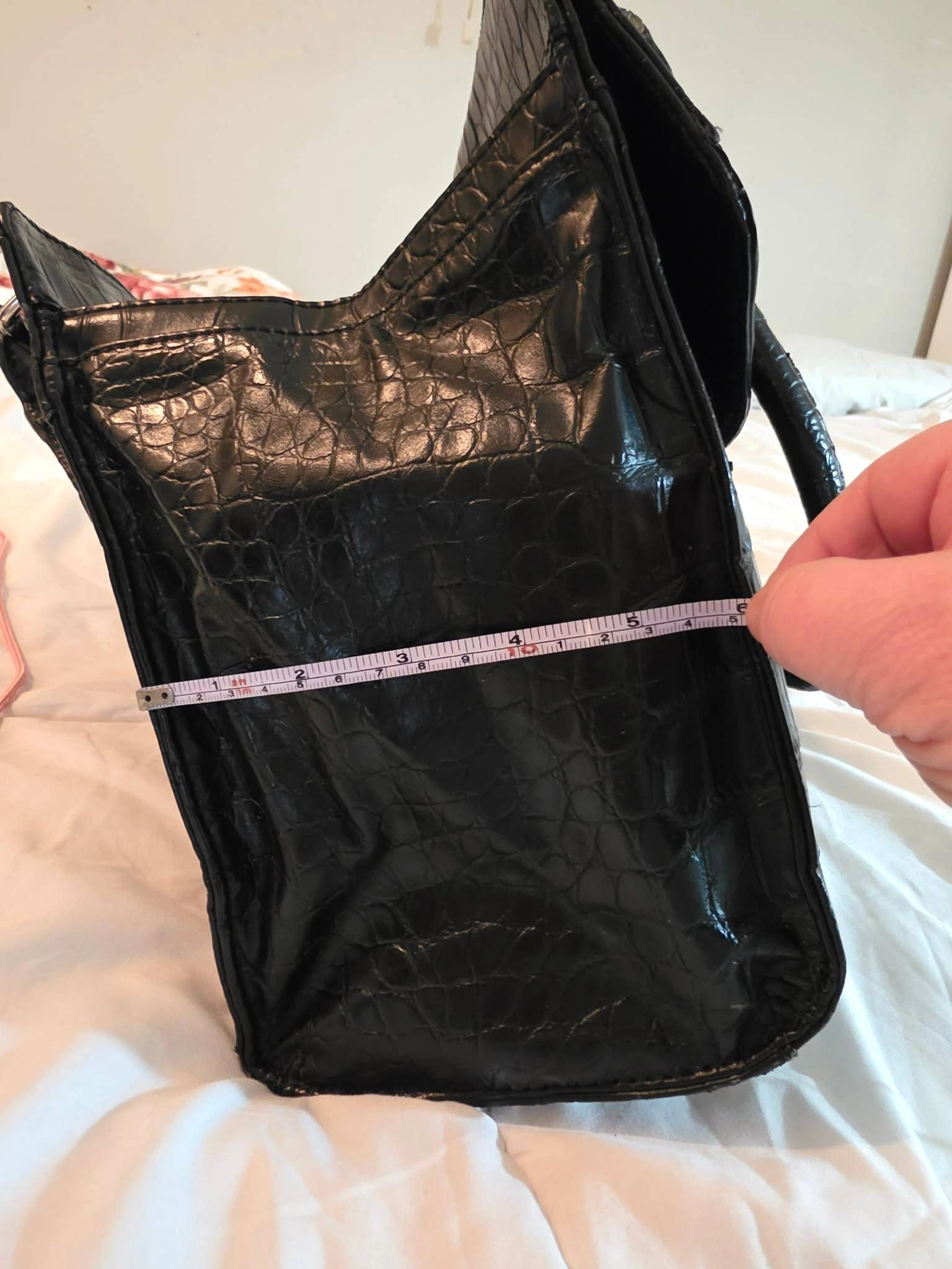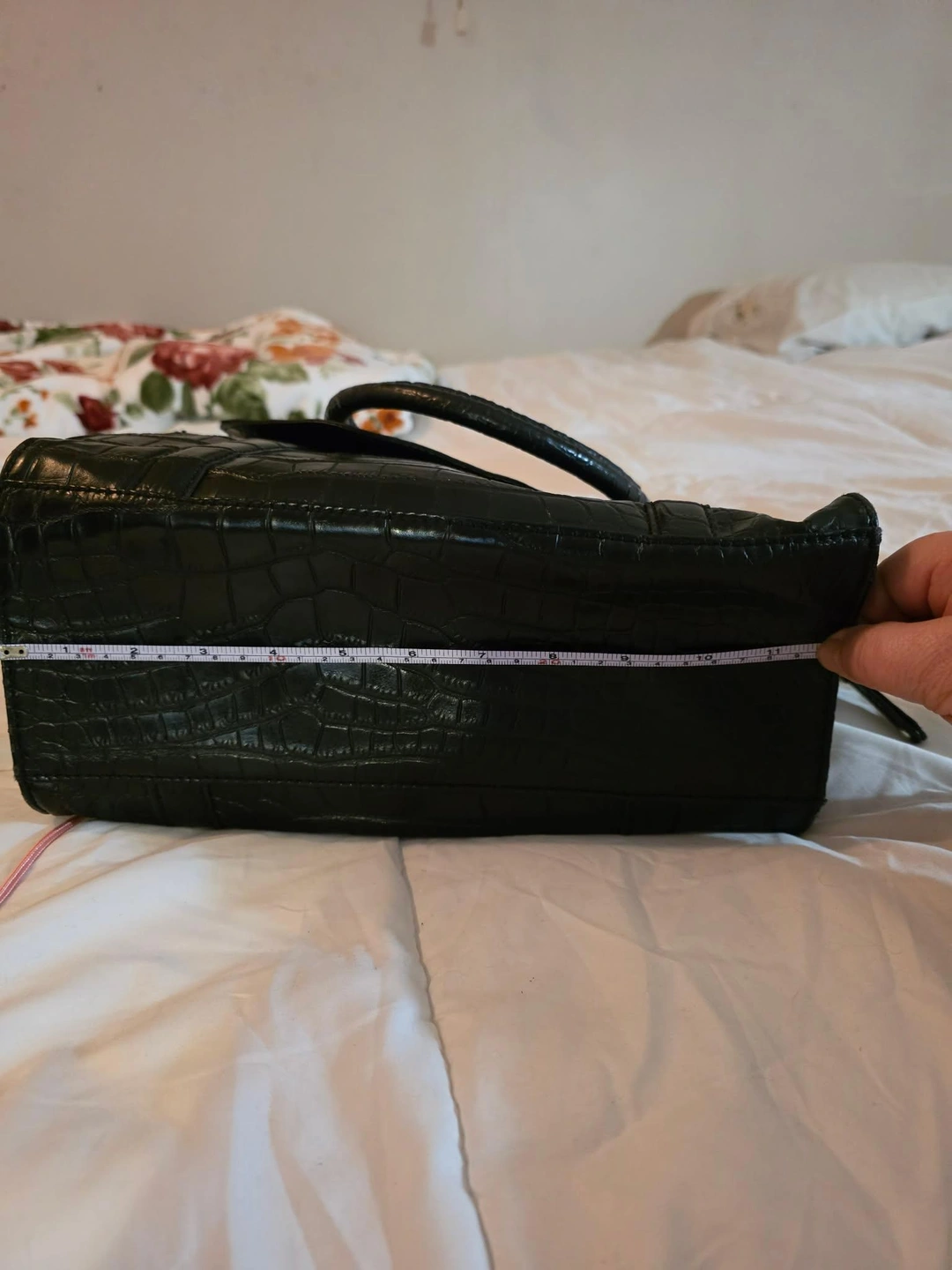 Selling a stylish black handbag! It has a unique crocodile-like texture. Perfect for adding a touch of sophistication to any outfit.