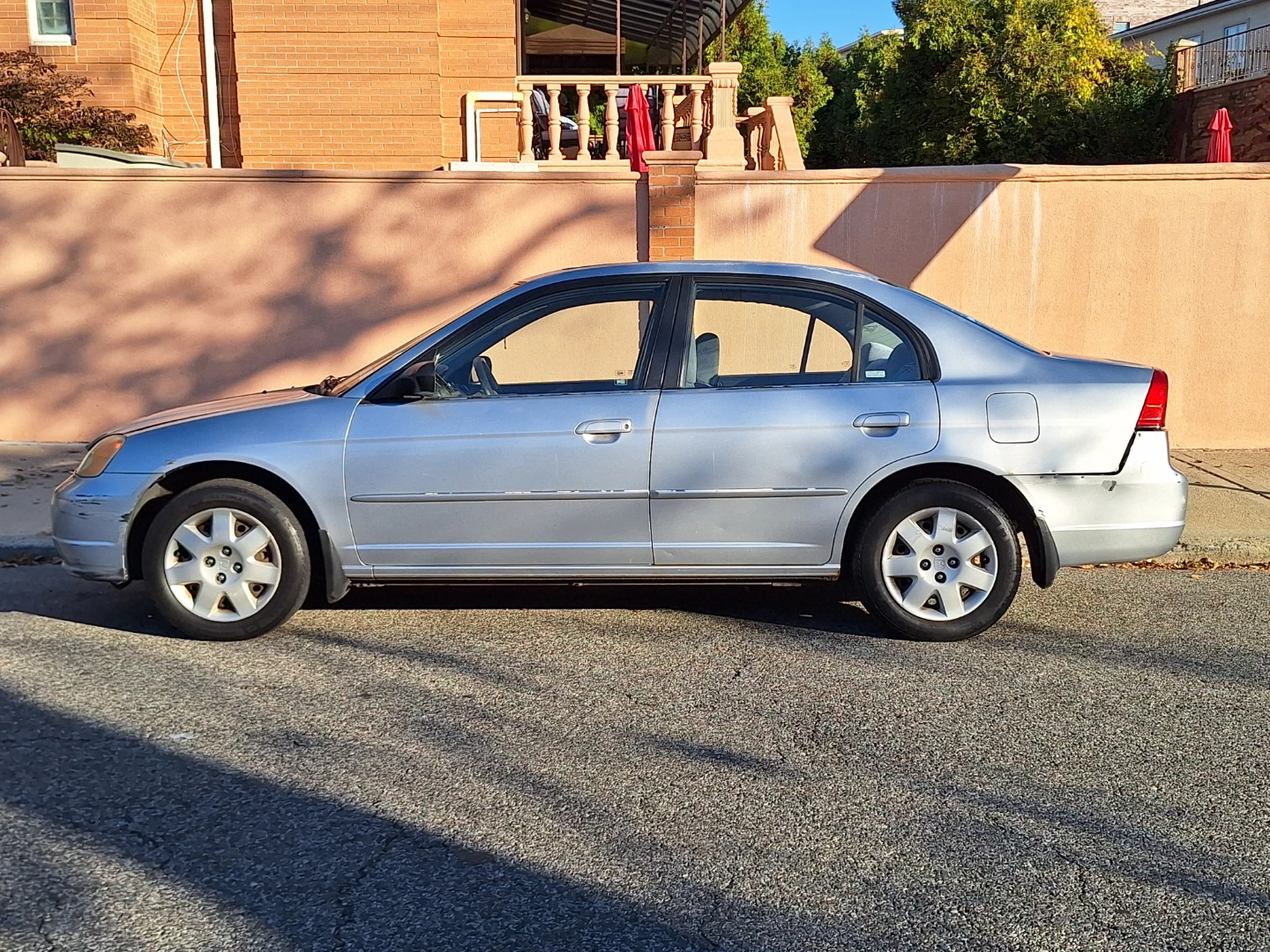I'm selling a 2002 Honda Civic EX, automatic, 143,500 actual miles, second owner, sunroof, tires, engine, and battery in very good condition. Cosmetically, the car has two dents on the front and rear bumpers, but these do not affect its performance. Overall, it's in very good condition.