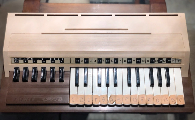 For sale is a vintage Emenee Audion Air Organ, a classic keyboard instrument perfect for beginners or collectors. This organ features a unique air-driven sound, offering a charming, retro tone. Though it shows signs of use, this Emenee Audion Air Organ remains functional and is ready to bring musical joy to its new owner. It's a fantastic piece for those interested in vintage instruments or looking for a distinctive sound. If this ad is still up, then yes, it's still available. You never know, this could be the missing piece to your band!