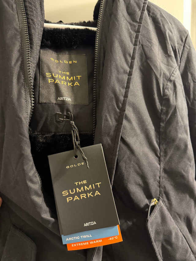 BRAND NEW SIZE SMALL Snuggle up in this Aritzia Summit Parka, designed to keep you toasty with its extreme warmth rating down to -40°C. It features Arctic Twill fabric and is filled with 700+ fill power down. This parka is brand new with tags!