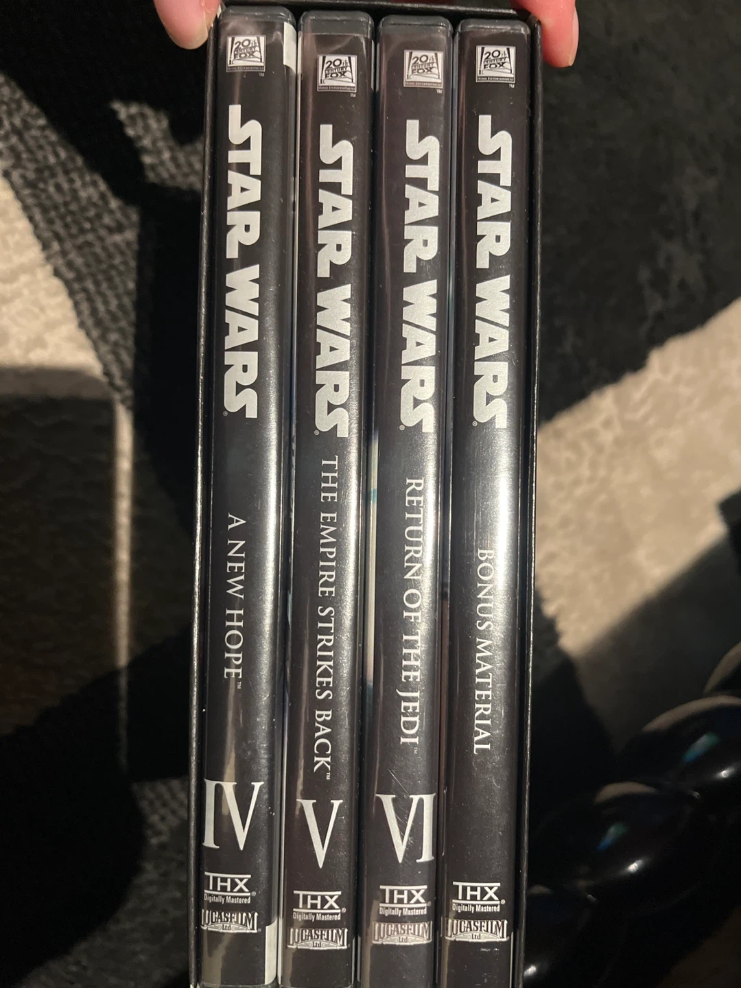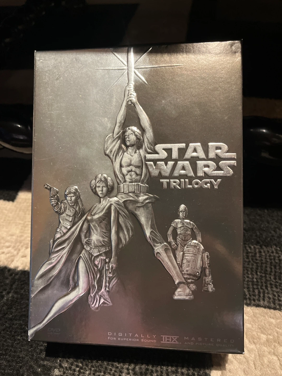 34$50 for movies x4 movies Selling a Star Wars Trilogy DVD box set. It includes Episodes IV, V, and VI, plus bonus material. Digitally mastered for superior sound and picture quality!