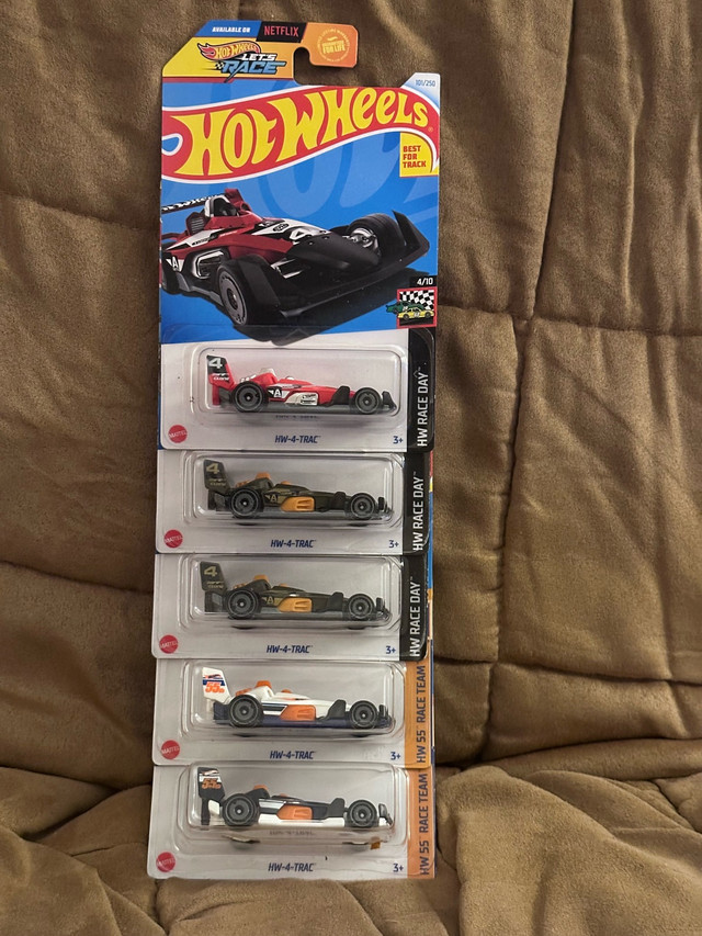 Selling a collection of new Hot Wheels HW-4-Trac cars, perfect for collectors or kids who love racing. These die-cast cars feature detailed designs and are ready to hit the track. Each car is brand new, still in its original packaging, ensuring top-notch condition. The HW-4-Trac model is a standout in the Hot Wheels lineup, known for its sleek appearance and racing pedigree. Please note that if the ad is up, it's still available!