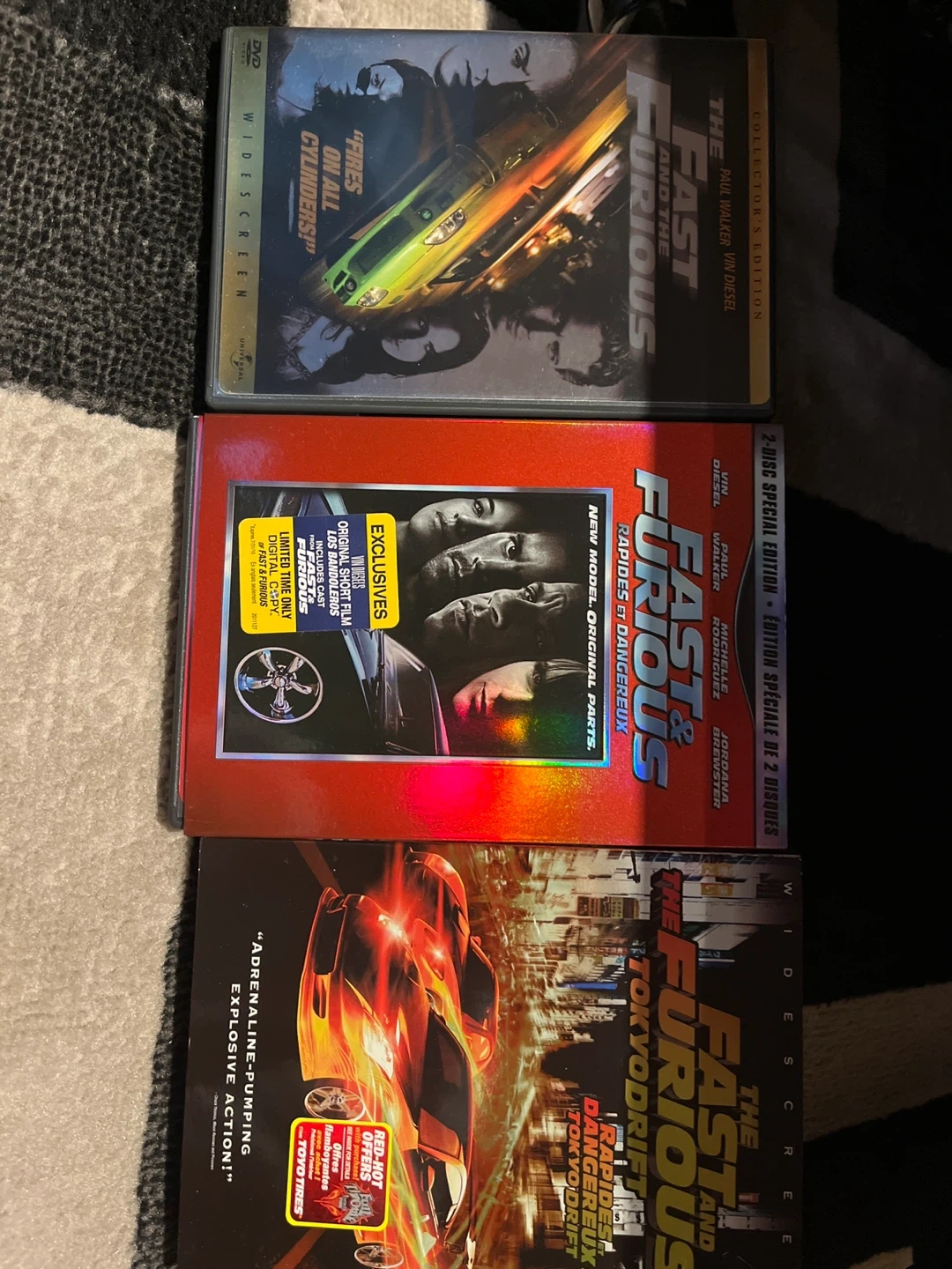 34Selling three The Fast and the Furious DVDs: Collector's Edition, 2-Disc Special Edition, and Tokyo Drift