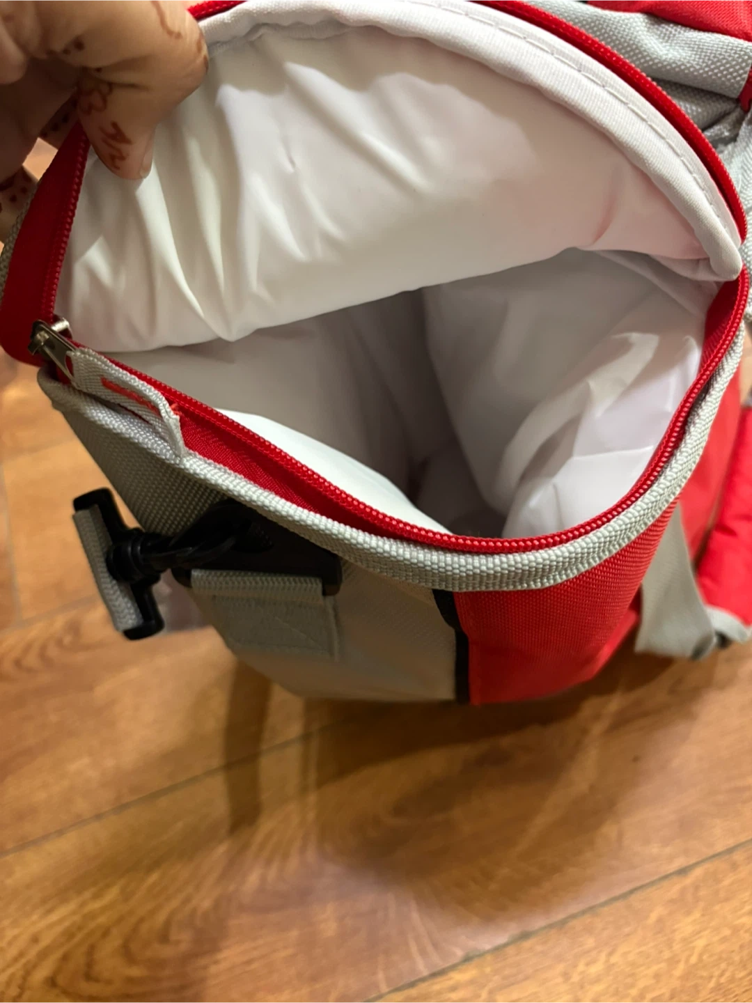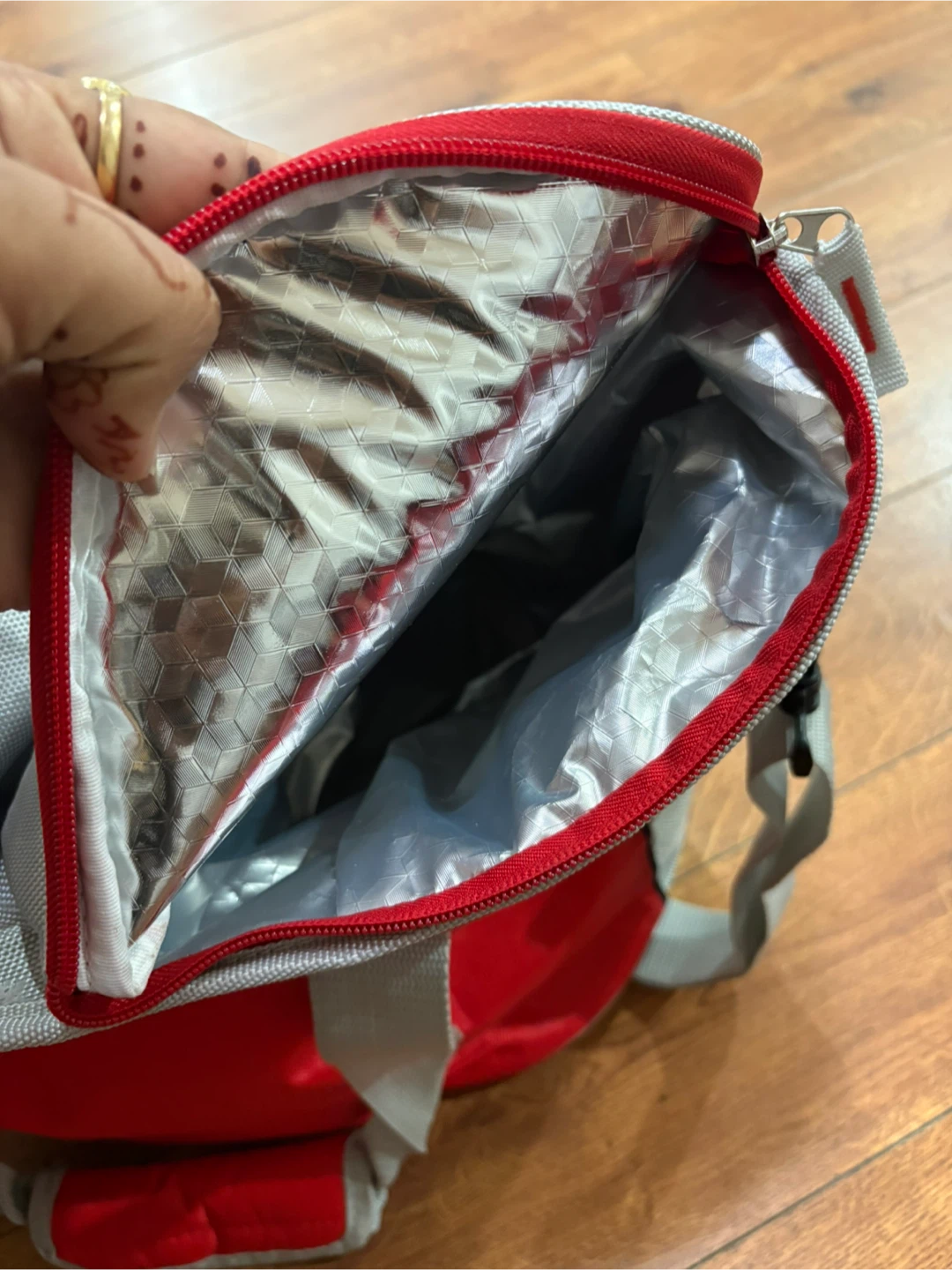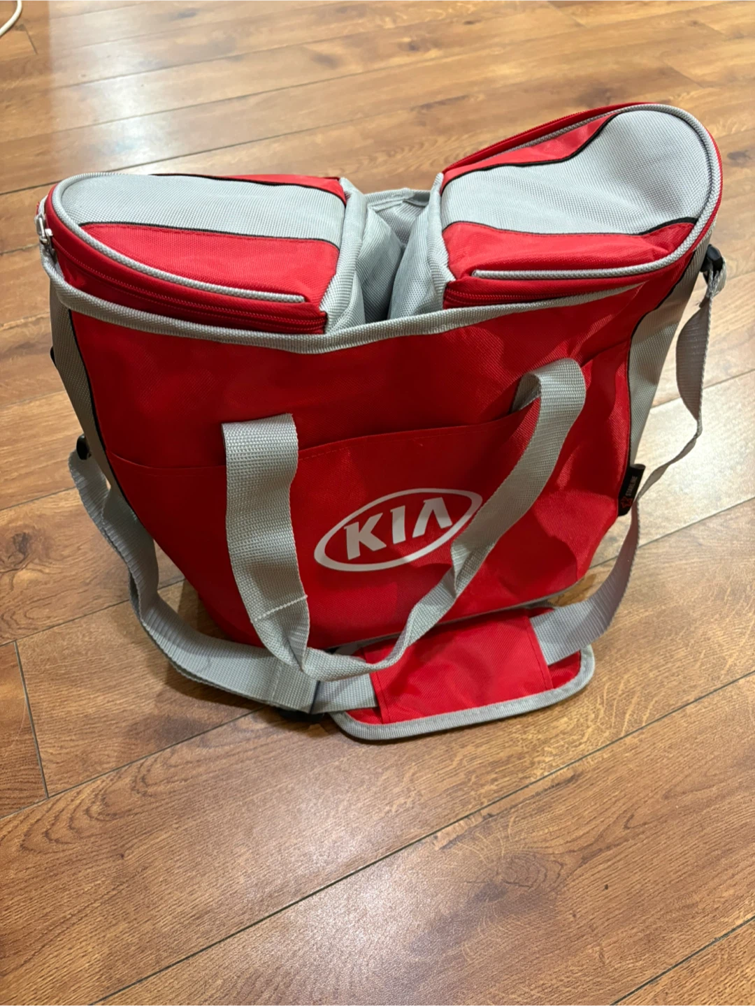 Selling a red and grey cooler bag with the KIA logo. It's in great shape and perfect for keeping your lunch or drinks cool on the go!