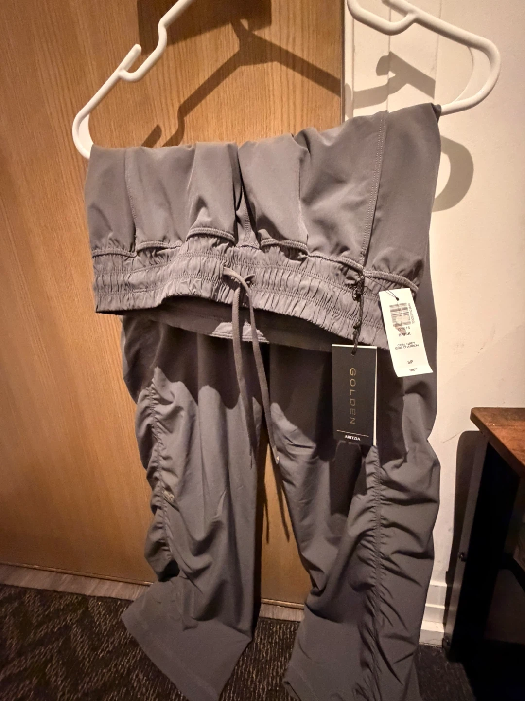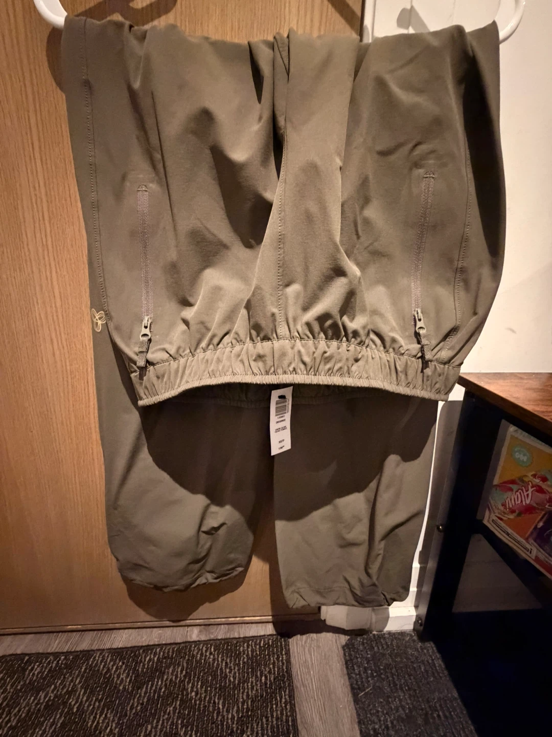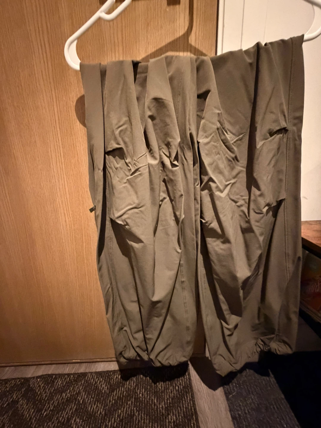 Selling a pair of Aritzia Golden Degree pants in size XS. They are a dark olive/olive and coal gray colour. They were originally bought for $138
