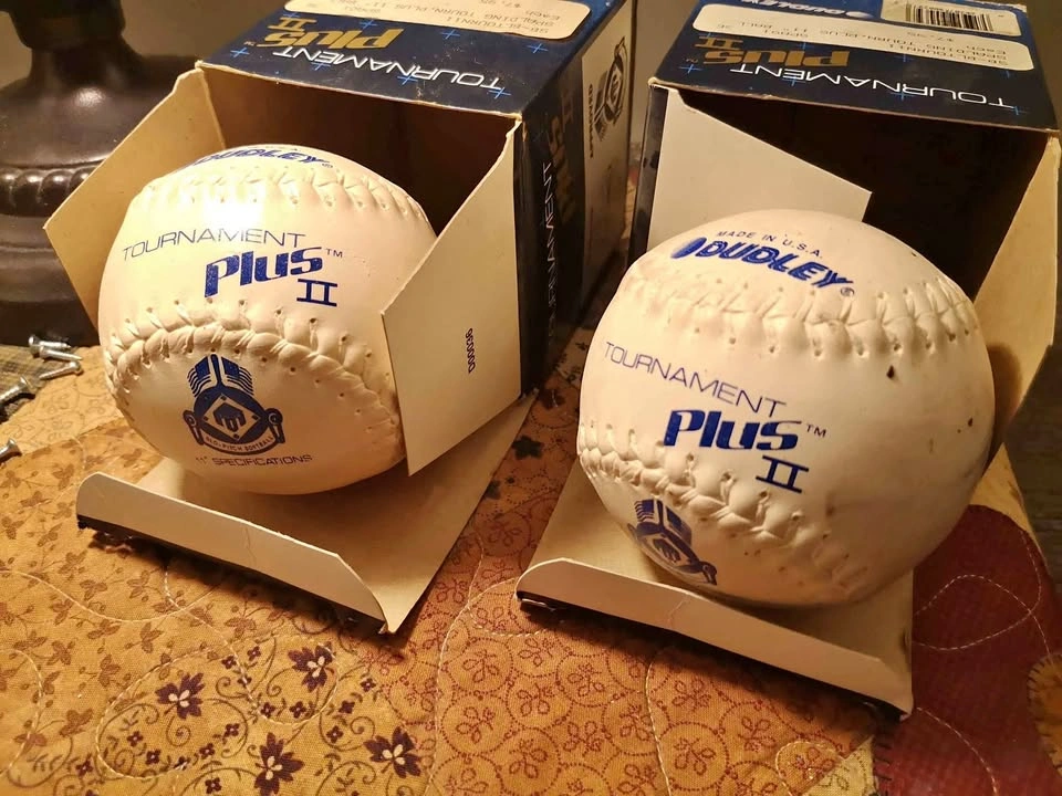 2x new Softballs for sale Dudley Tournament Plus II Softball - 2 softballs available - Made in USA - USSSA Slo-Pitch approved - Softball Association of America - 11" Specifications - $5 each
