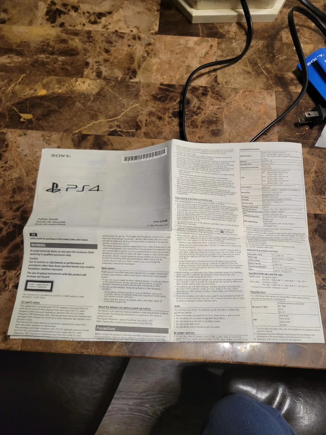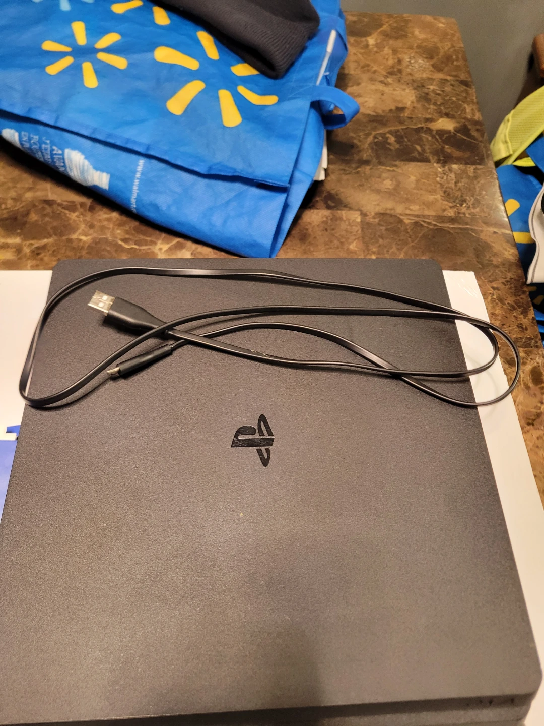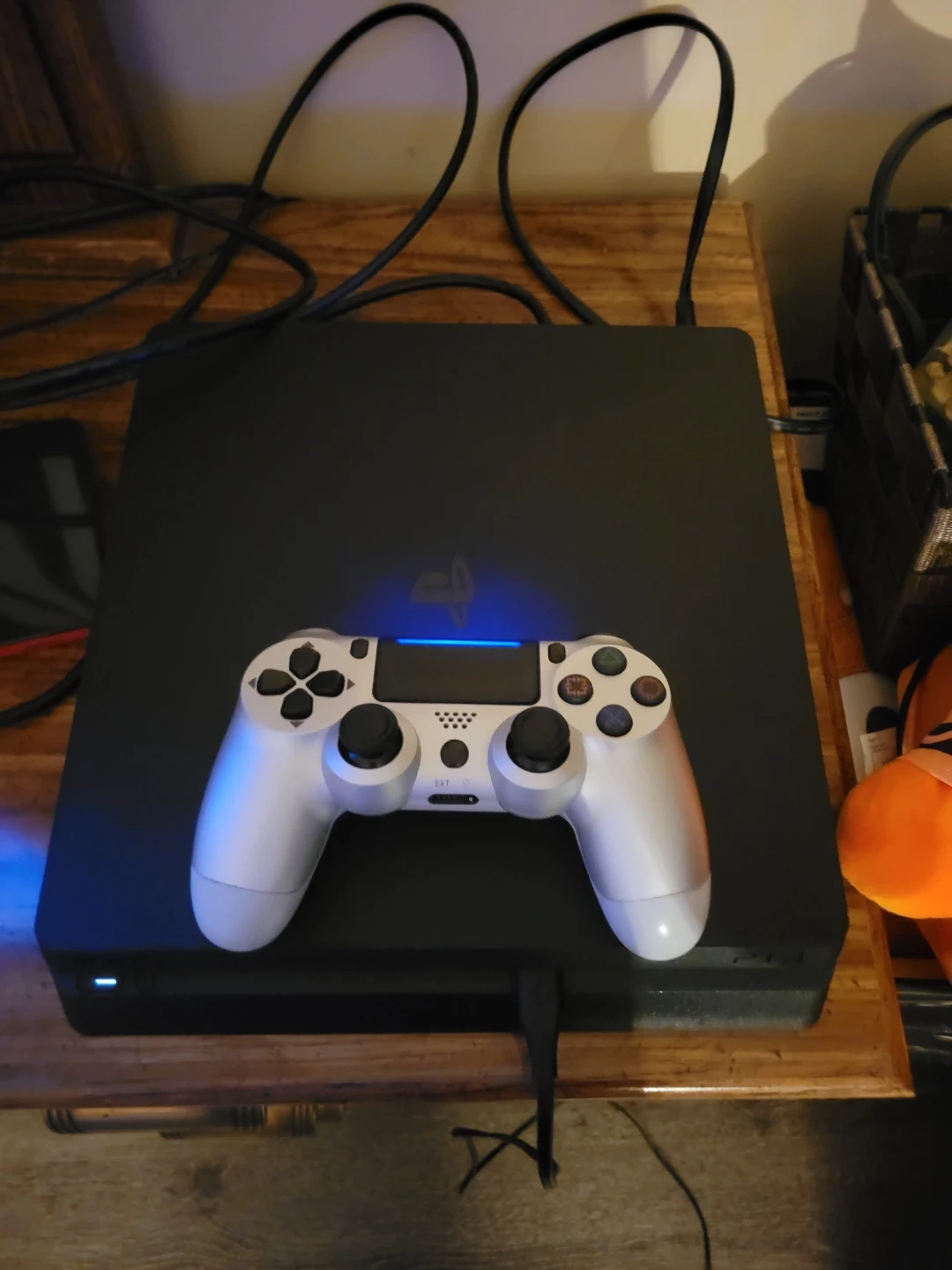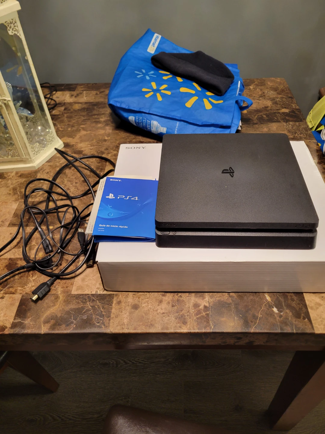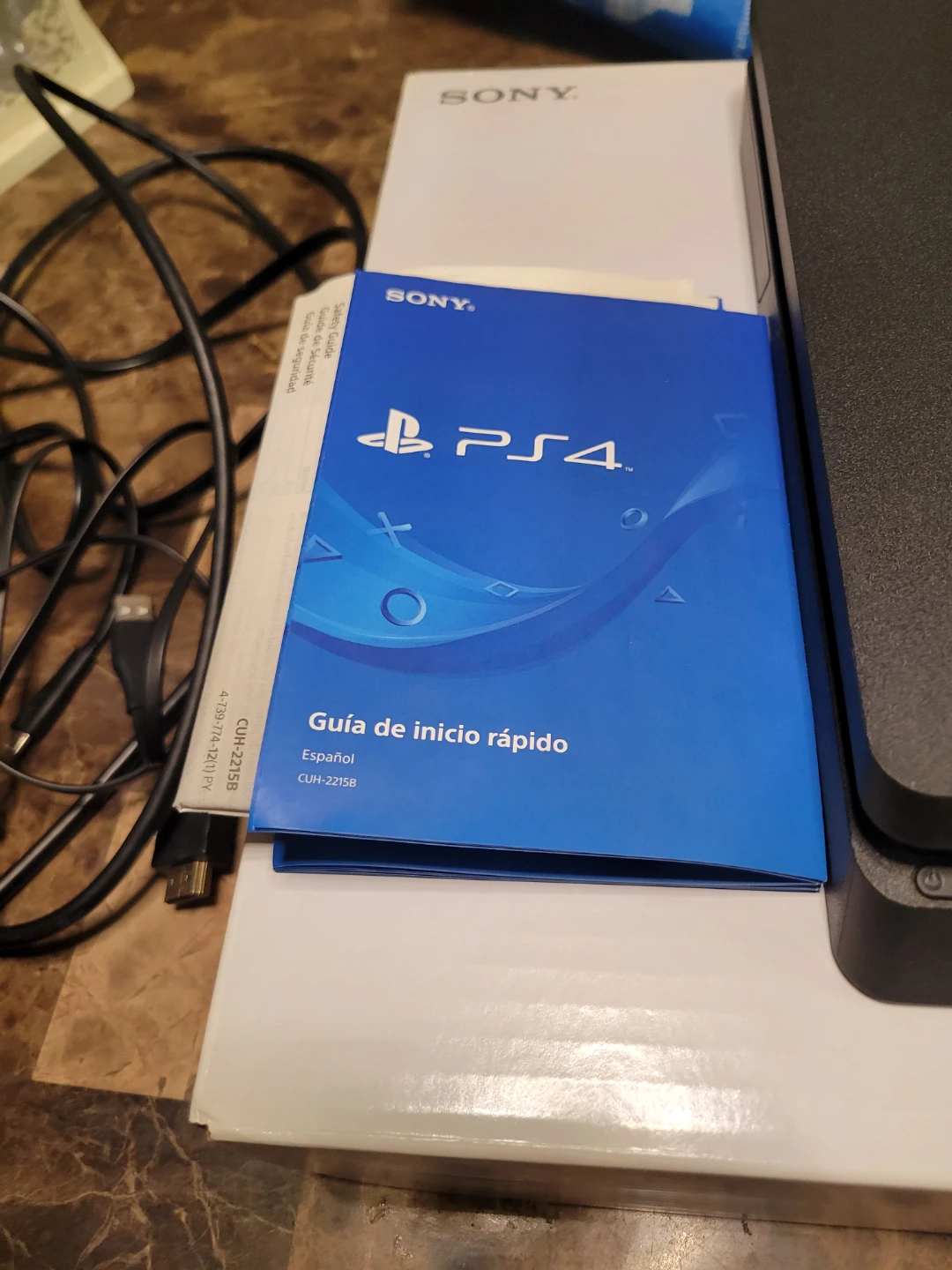 Selling a used PlayStation 4. It comes with the box and all the necessary components to get you gaming right away! Perfect for some fun nights in. Comes with the box, all the cords, fully protected and comes with a controller. Only used for a year then I left it in my closet it still works I tested it and it has 800+ gb on it if anyone wants to know