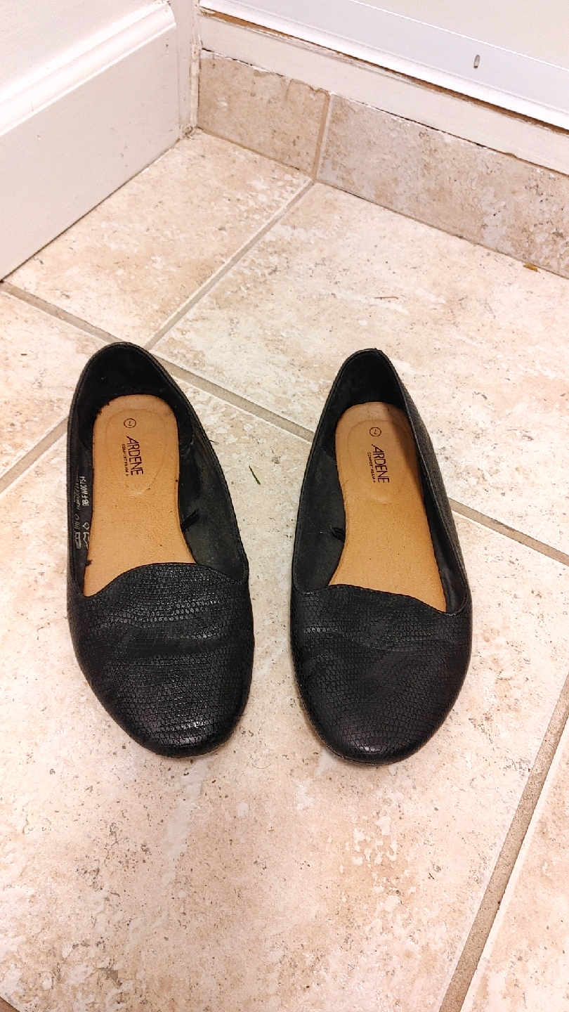 68These are a pair of Ardene flats in black. They have a textured design and are in good condition.