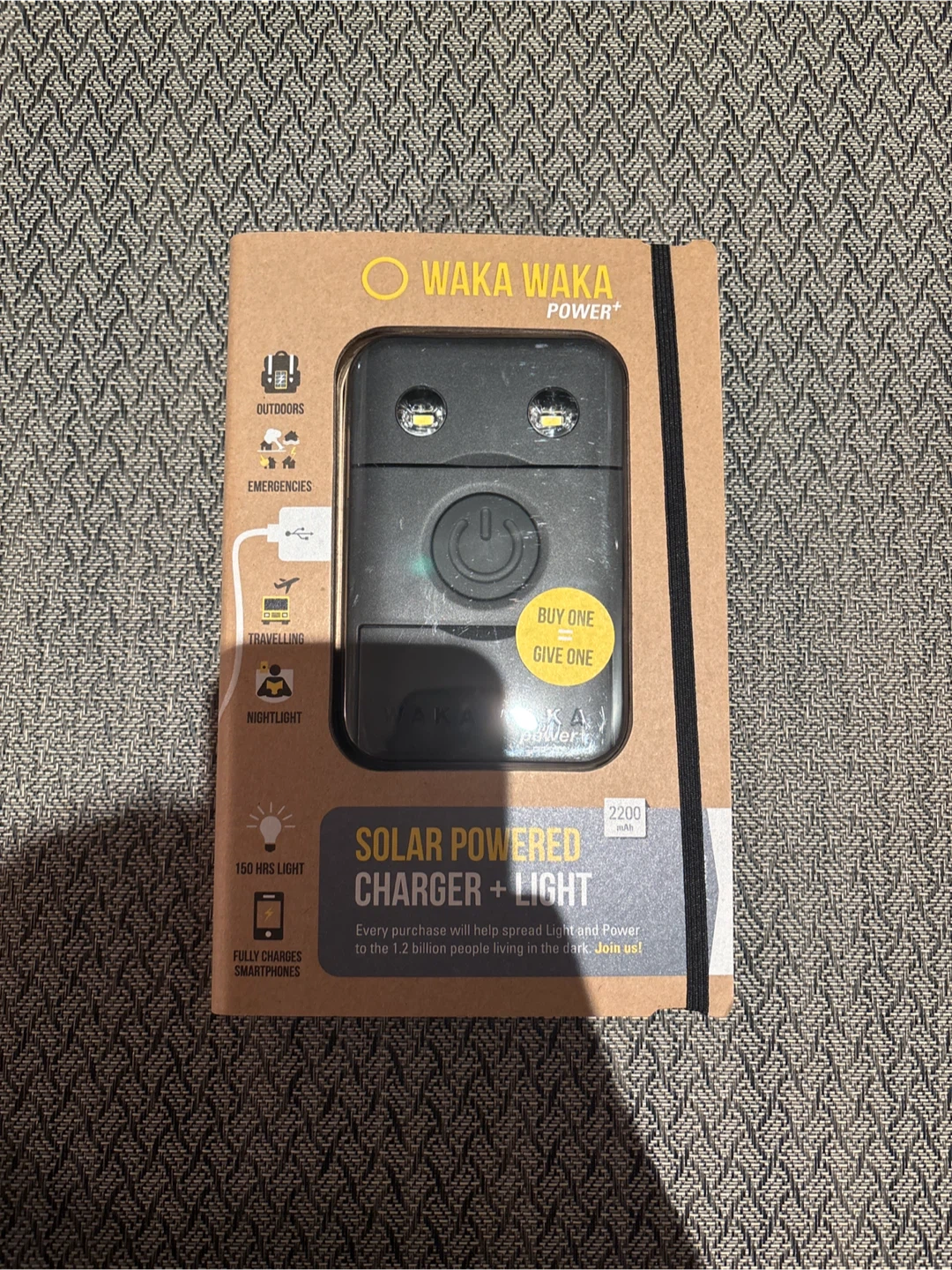 Selling a WakaWaka Power+ solar powered charger and light! It's perfect for the outdoors, emergencies, travelling, and even as a nightlight. It provides 150 hours of light and fully charges smartphones. Every purchase helps spread light and power!