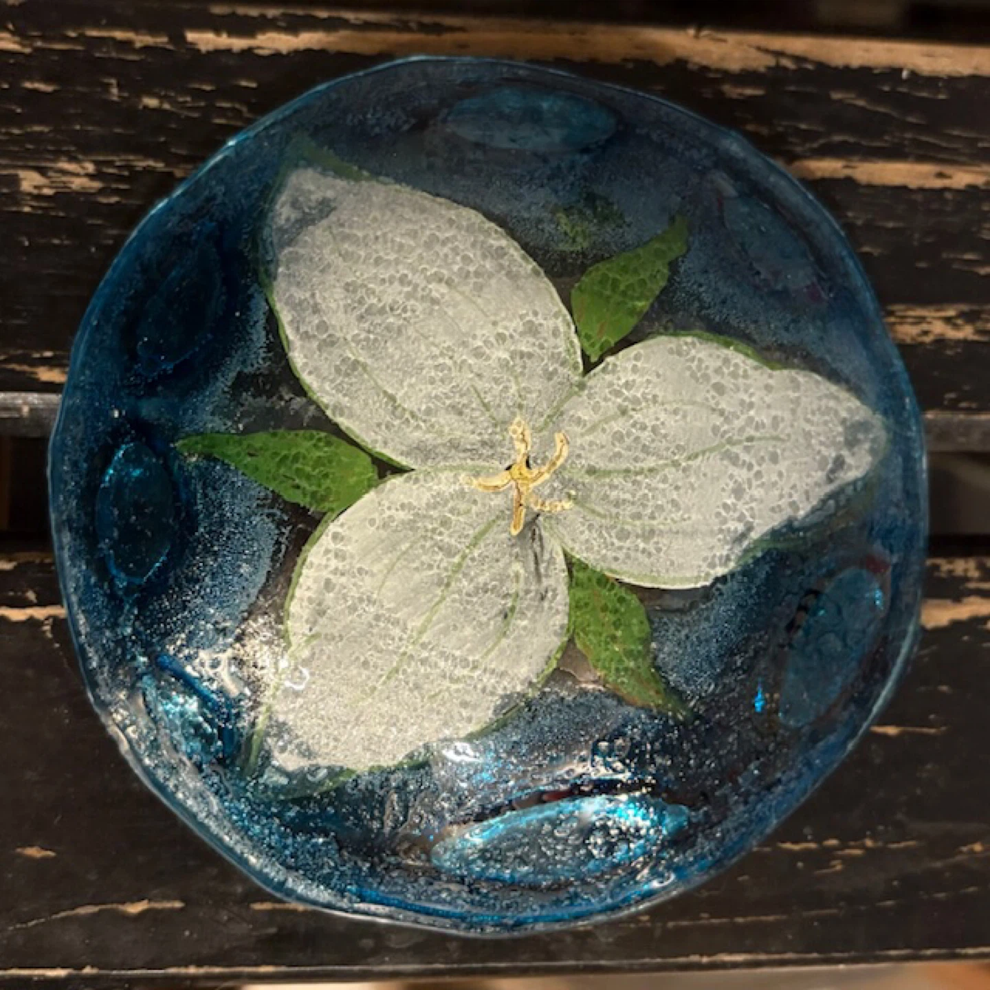 🤩Small Handcrafted Glass Dish with Trillium Design