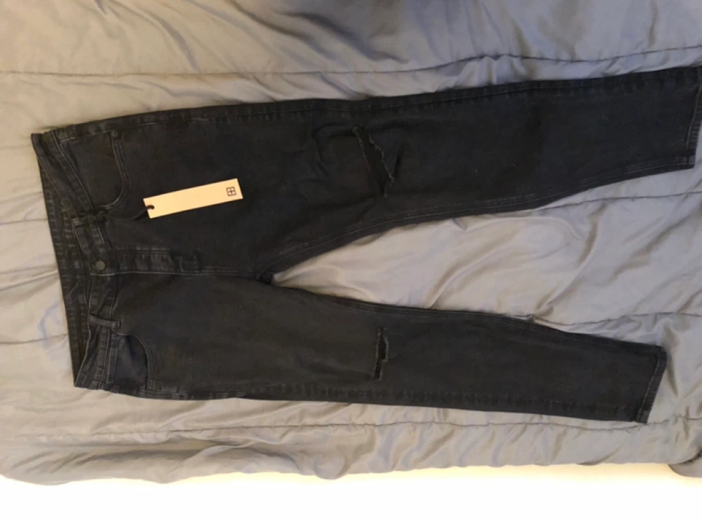 Selling a pair of EB Denim black distressed jeans in size 34. They have a cool, edgy look with the distressed details. Perfect for adding some character to your wardrobe!