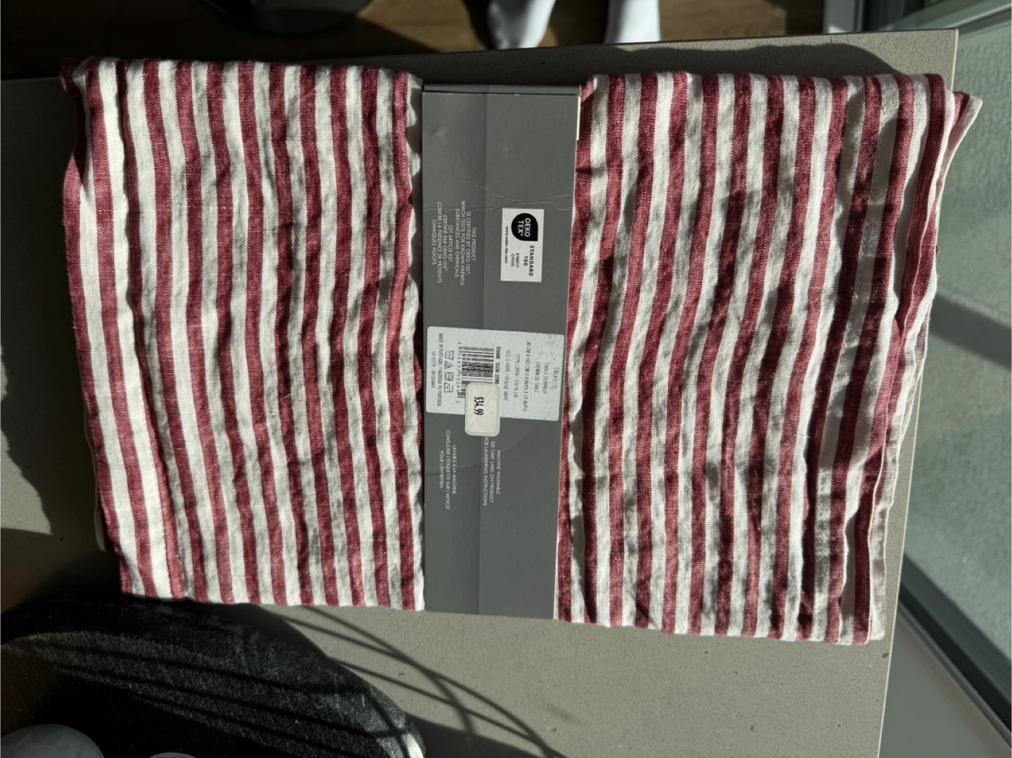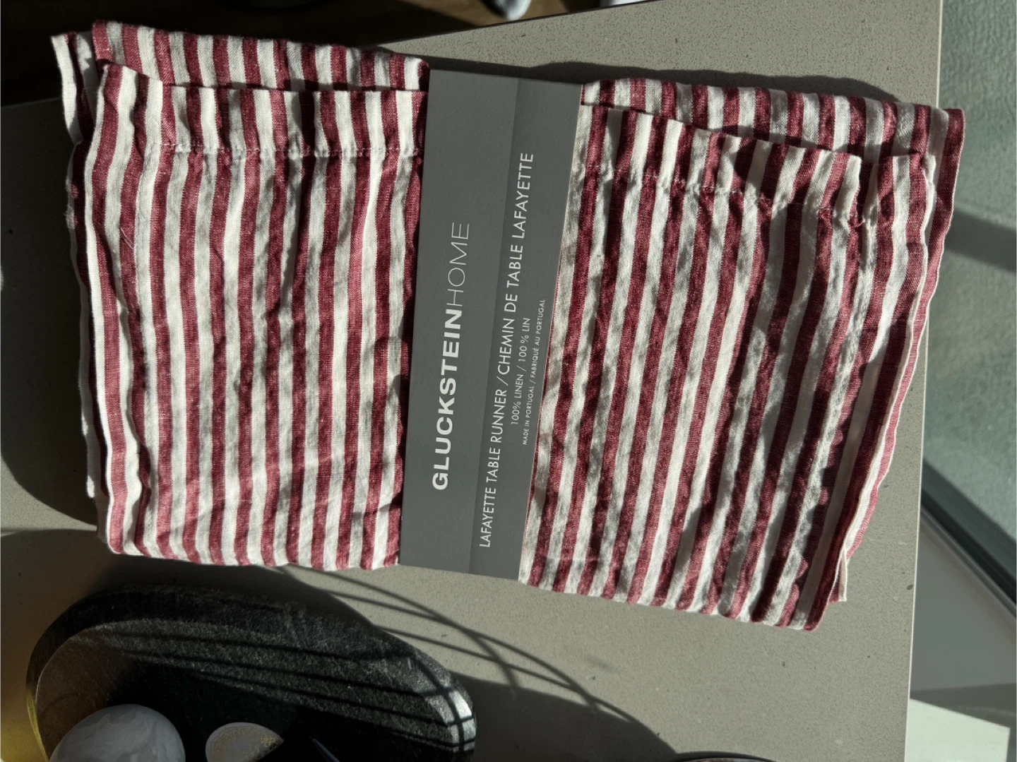 Brand new GlucksteinHome Lafayette table runner! It's made of 100% linen and is machine washable. The original price was $34.99.