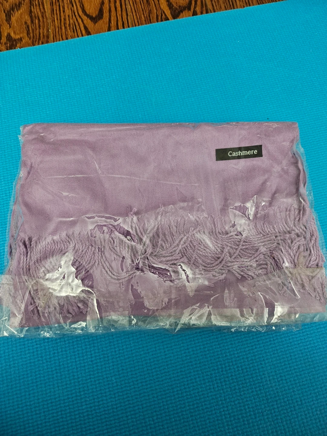 💜Selling a good Quality brand new cashmere scarf still in its original packaging! It's a beautiful lilac colour, perfect for adding a touch of elegance to any outfit. The scarf is made of Super Soft cashmere and features a fringed edge.