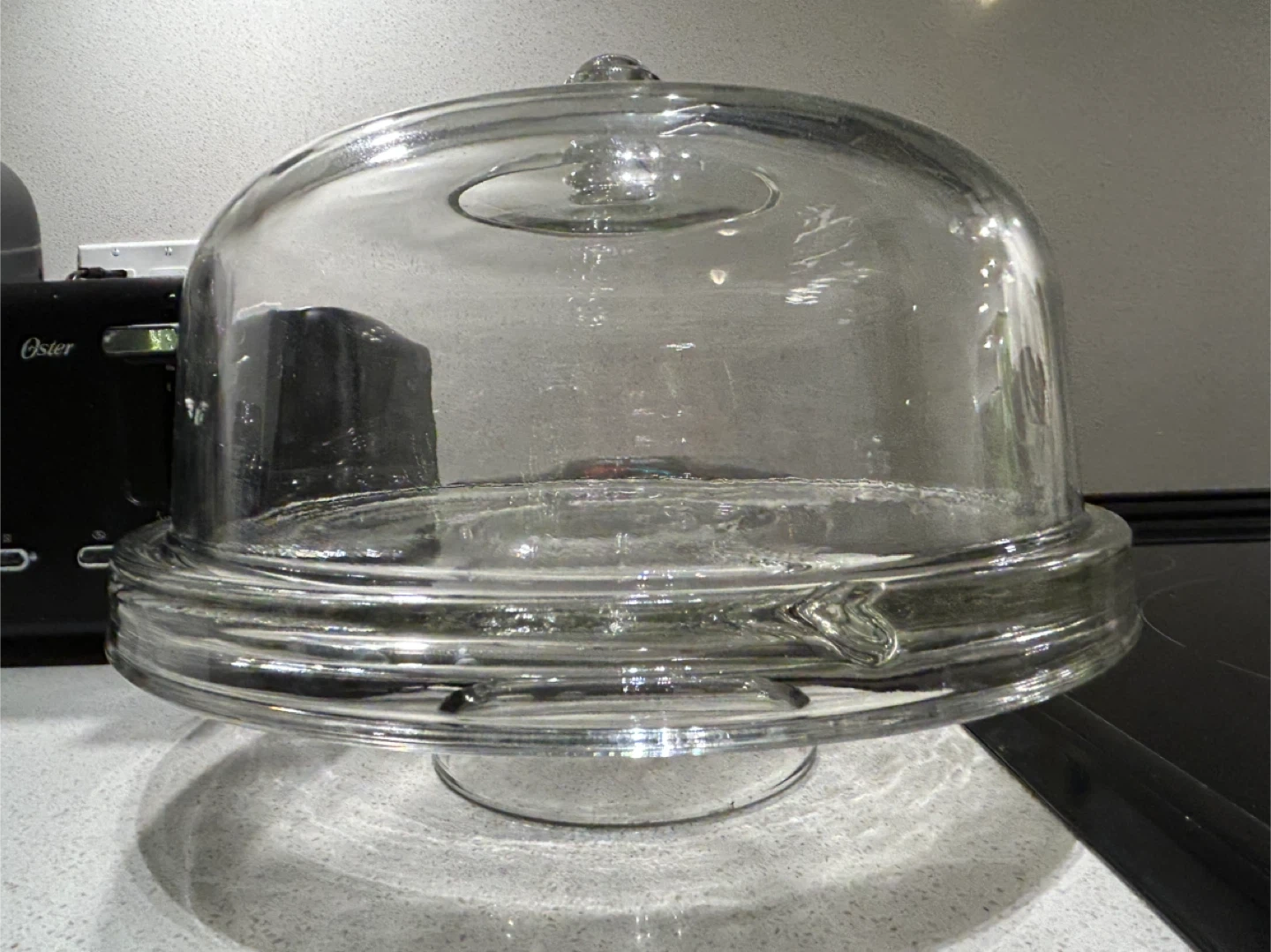 144Selling a lovely glass cake stand with a dome. It's perfect for displaying your baked goods or desserts.