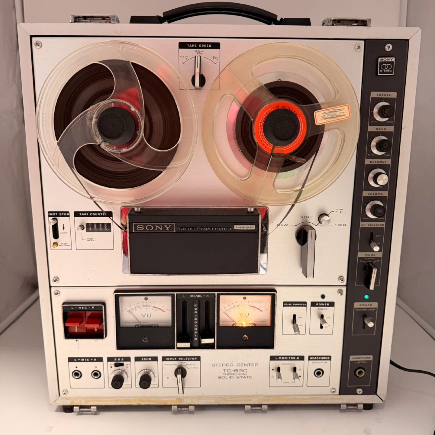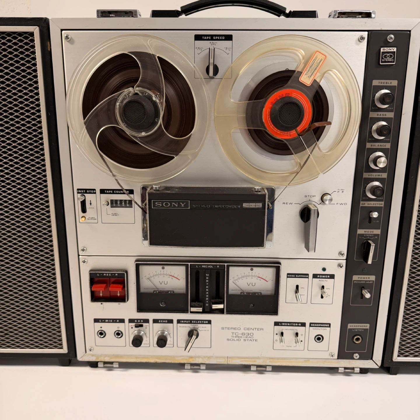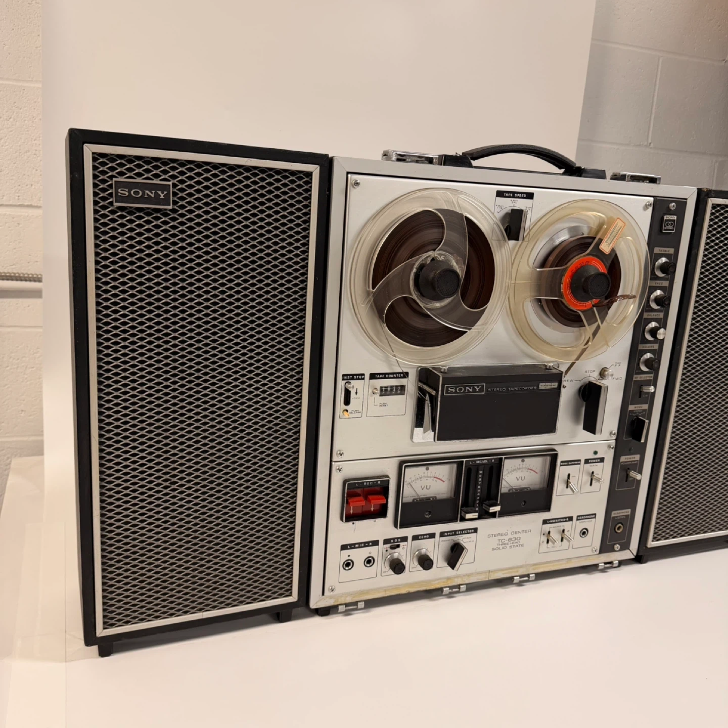119Sony TC-630 Stereo Center Reel-to-Reel Tape Recorder with original Sony speakers. Fully tested and working. Clean condition for its age. Includes: • Sony TC-630 main unit • Left & right Sony speakers • Two reels as shown • All original controls, VU meters, tape counter, inputs/outputs, etc. Features: • 3-head solid-state deck • Multiple tape speeds • Aux/Mic/Phono/Tuner inputs • Line out + external speaker outputs • VU meters • Treble/Bass/Balance controls Vintage item from late 1960s / early 1970s — very collectible. ✅ Delivery available with extra fee ✅ Pickup in North York Message me if interested. 199