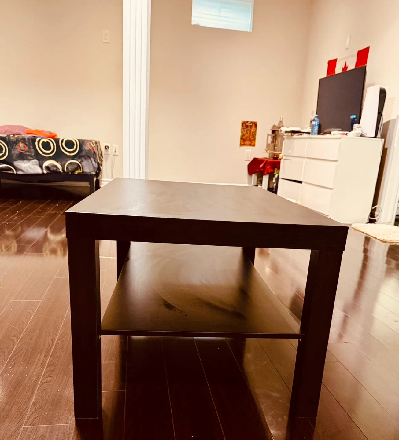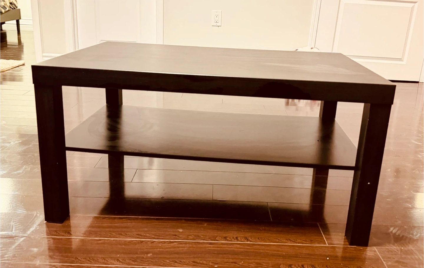 Selling a gently used IKEA Lack coffee table in black-brown. It's a simple and sturdy table with a convenient shelf underneath for storage. Dimensions are 90x55 cm.