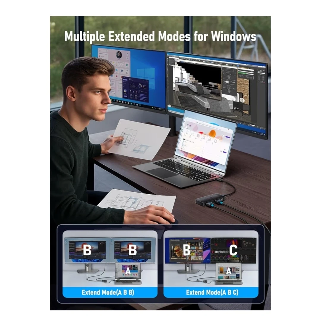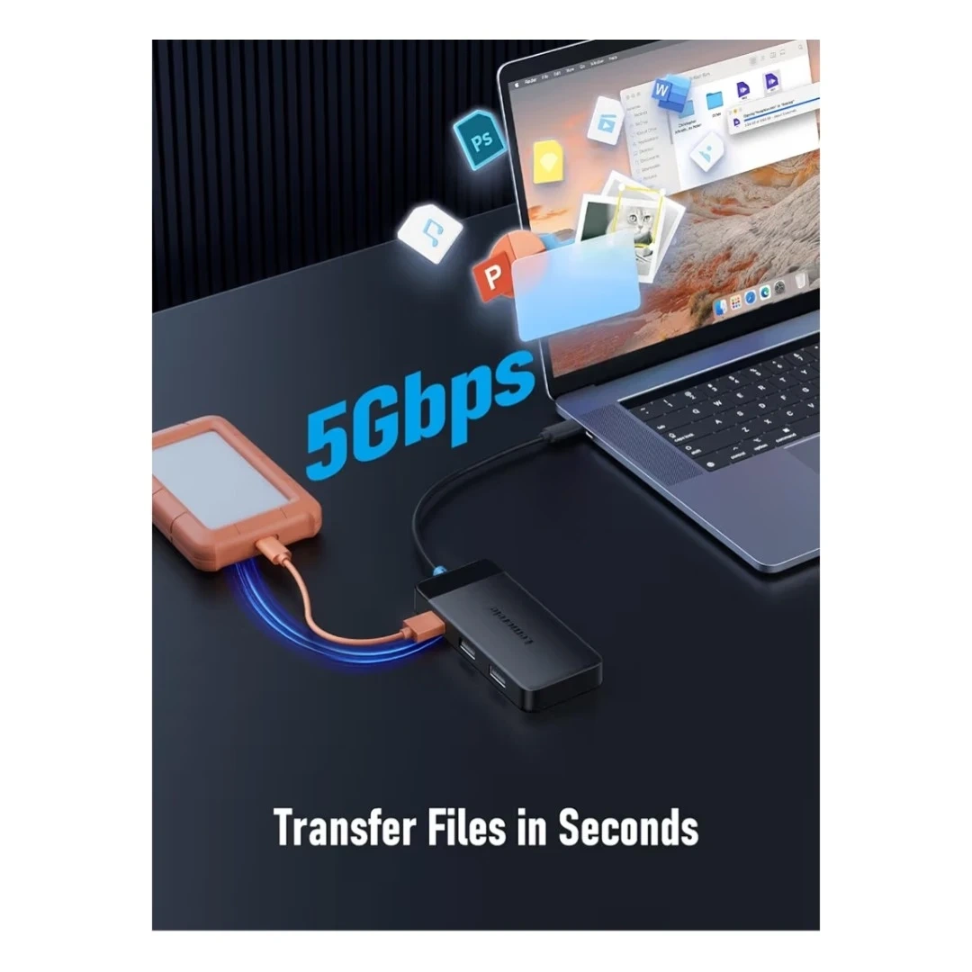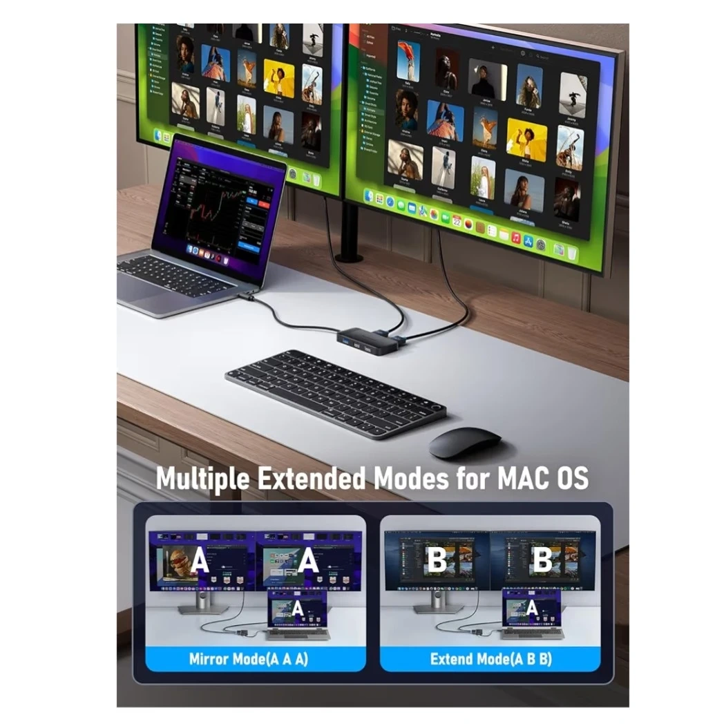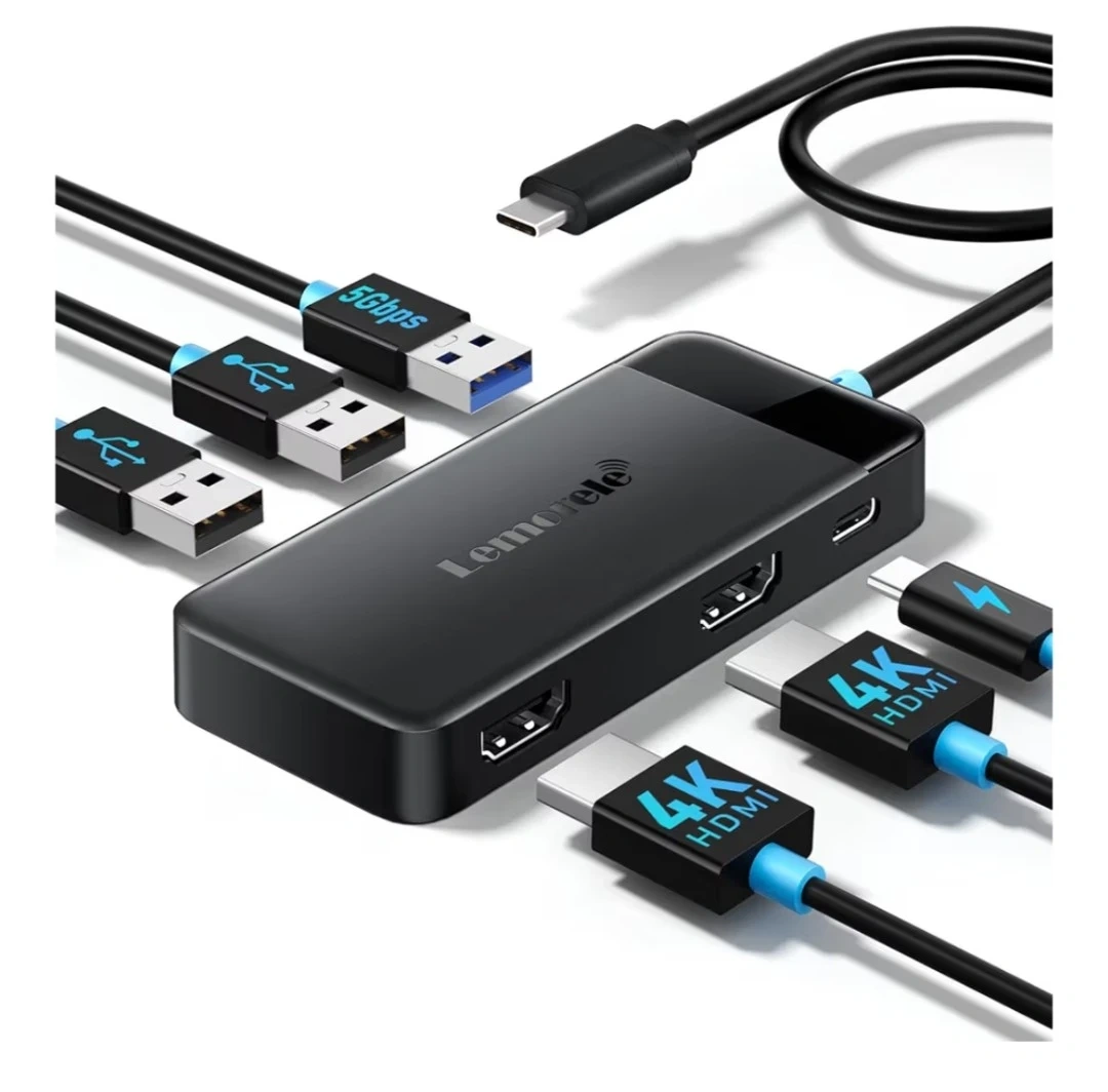 26Brand New in Box Lemorele 6 in 1 USB C Hub. This hub supports fast PD charging up to 100W, and can fully charge a Macbook 2020 in about 1.5 hours. It has multiple extended modes for both MAC OS and Windows! The hub is 3.7 inches x 1.6 inches x 7.9 inches.