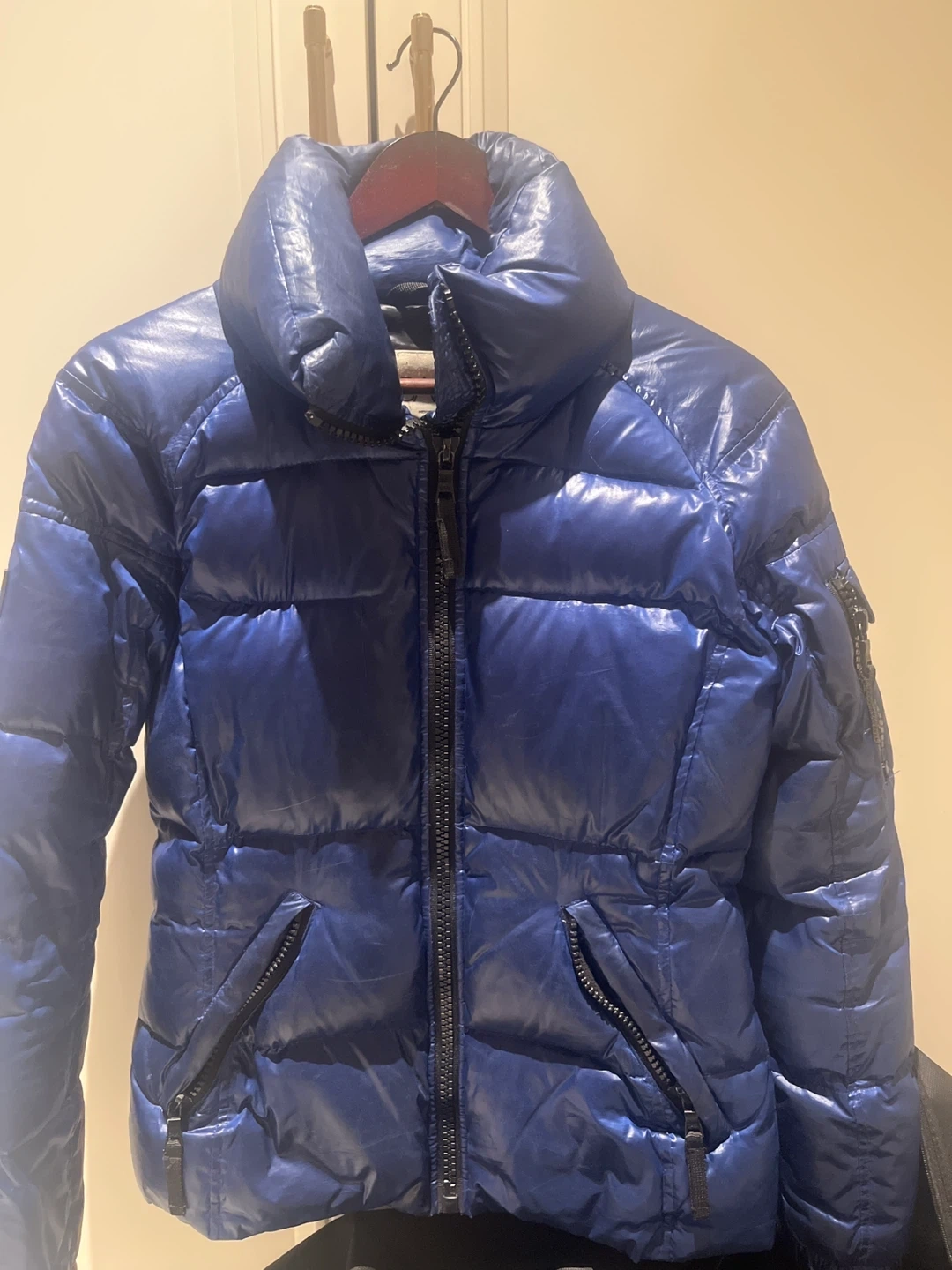 Here's a stylish blue padded puffer jacket! It's in great condition and ready to keep you warm and cozy during the colder months