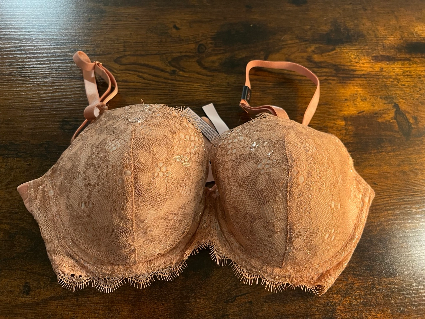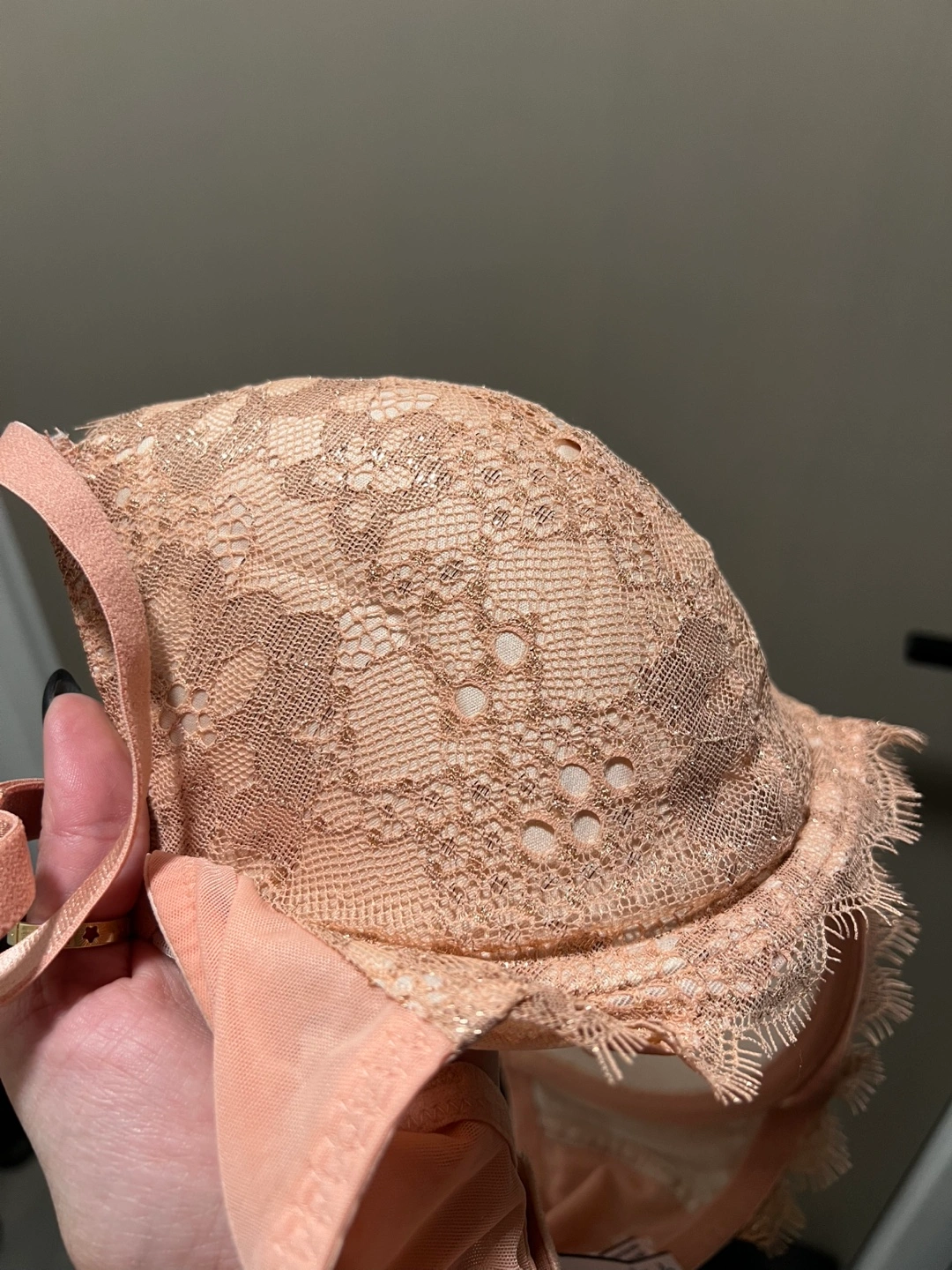 Victoria's Secret sparkly peach mesh bra in size 32DDD. It's in new condition and ready for a new home! Originally bought for $82.95 CAD