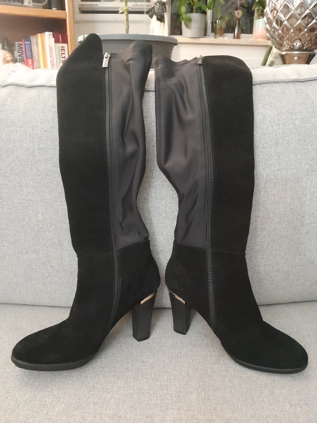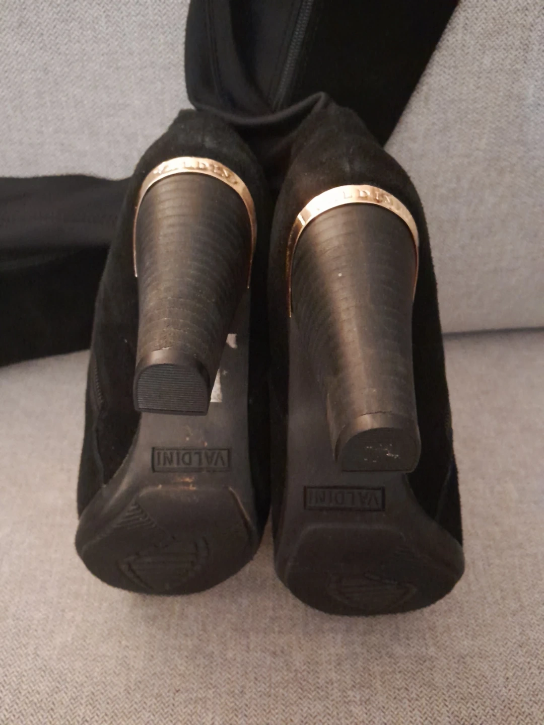 These are a pair of Valdini over-the-knee boots in black! They feature a stylish heel with a gold accent. Perfect for adding a touch of elegance to any outfit. (In good shape.) SIZE 6.5