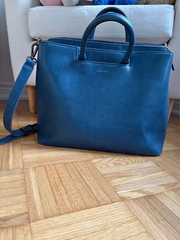 Matt & Nat large bag in a dark teal blue colour. Great for school as it fits a laptop and books perfectly!