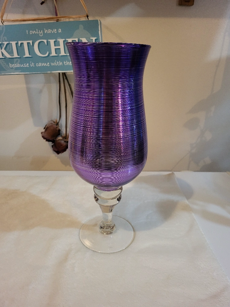 A lovely purple decorative vase that would look great in any room! It has a unique design and is in excellent condition. No cracks or chips.