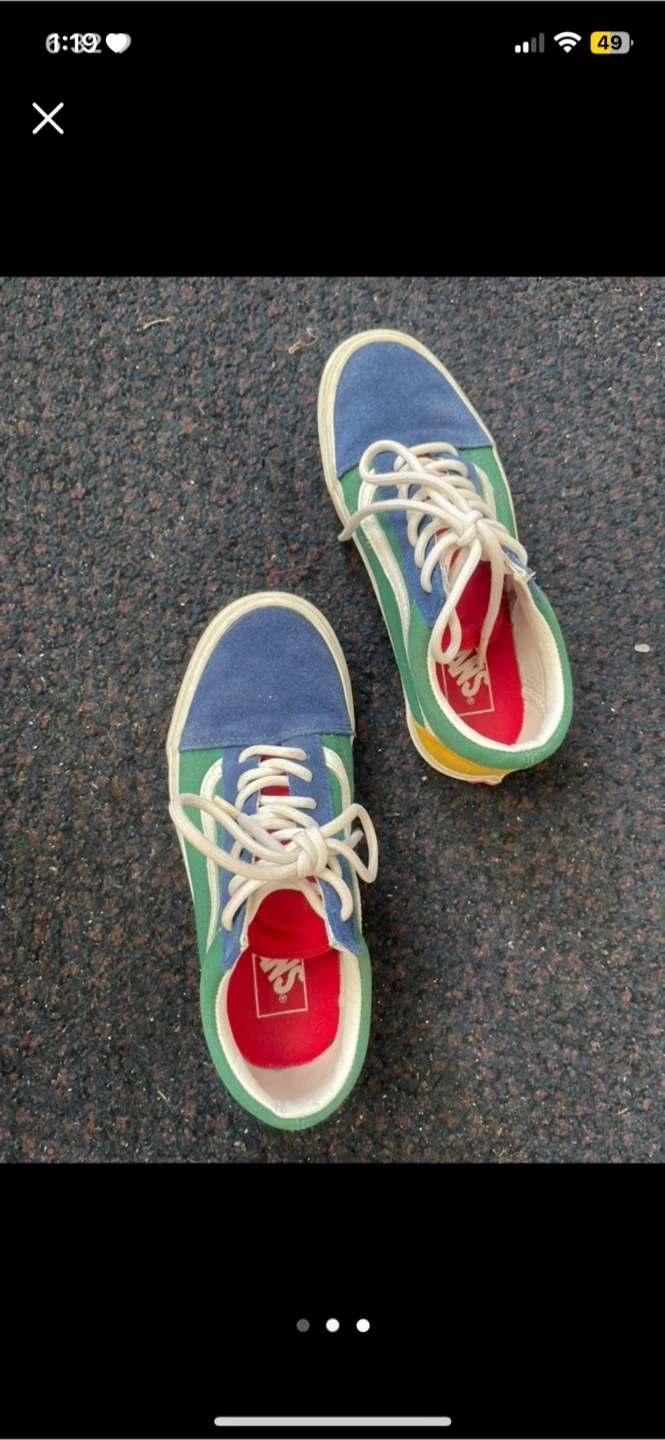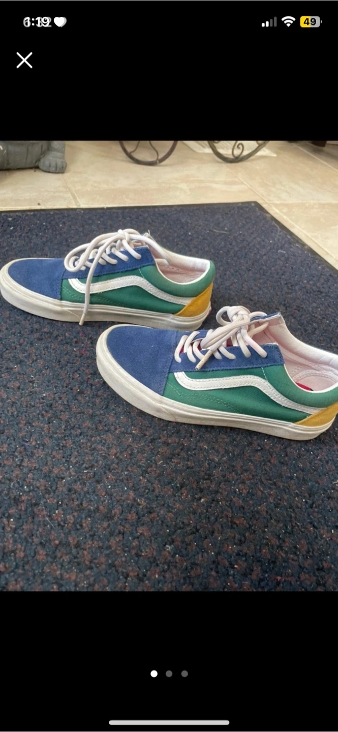 Selling a pair of Vans Old Skool sneakers in a cool colour block design! The shoes feature a mix of blue, green, and yellow. They're in great condition and ready for a new home!