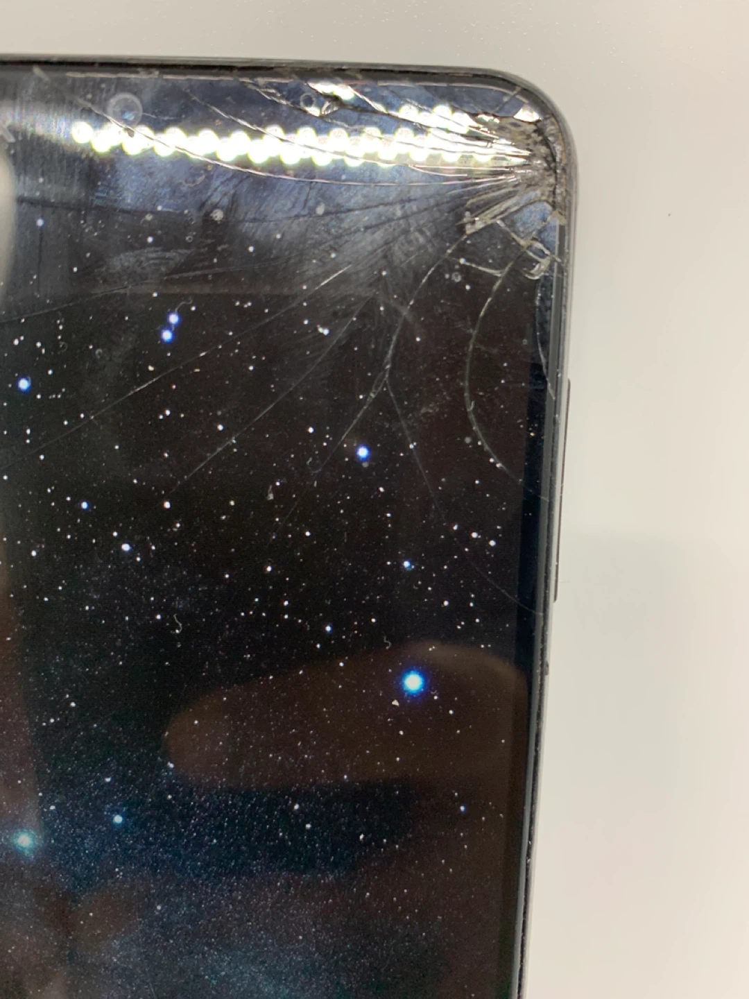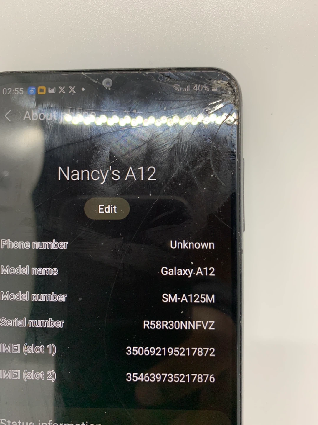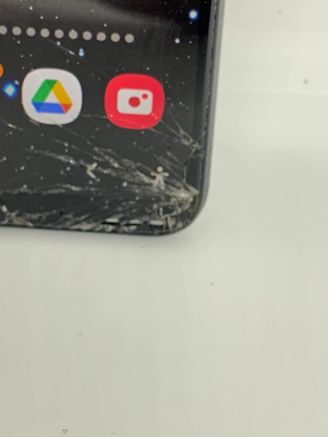 93Selling a Samsung phone that has seen better days. As you can see in the photos, the screen is cracked and there's some wear and tear on the body. Still functions, but needs some TLC!
