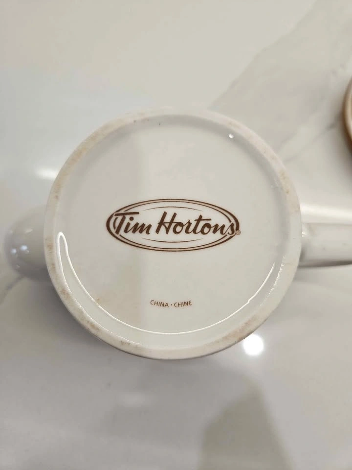 Collectable vintage porcelain Tim Hortons teapot. Holds up to 20 ounces. Approximately 6 1/2" from top of lid to bottom, 8 1/2" wide from tip of spout to handle. It features the classic Tim Hortons "Always Fresh" logo on the side. These teapots are considered collectible items by some Tim Hortons enthusiasts and Canadiana collectors.
