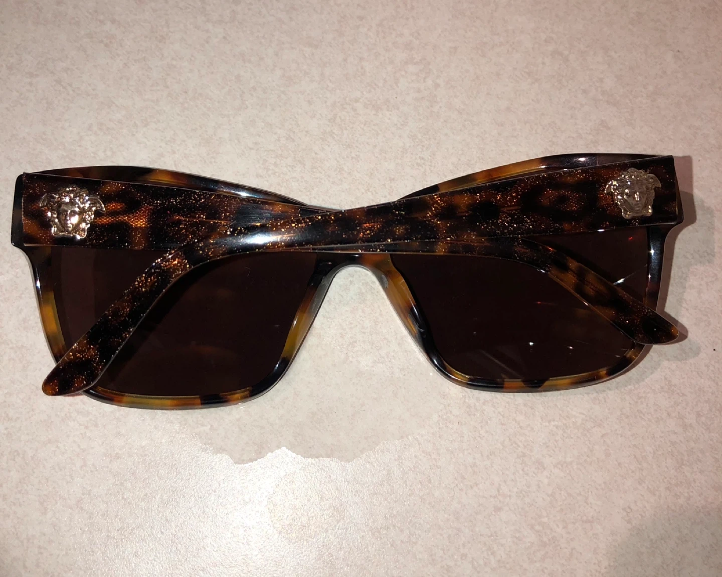 Beautiful Versace sunglasses. Had them for a few years, and I still have the box, the black casing, booklet of authenticity, and the cleaning cloth untouched. I have to mention, There are couple of very tiny dot markings on the lenses, but you can hardly see them, and doesn’t affect your vision at all. You can see on one of the photos if you look closely, but nothing serious. Can deliver if needed:) $175 obo