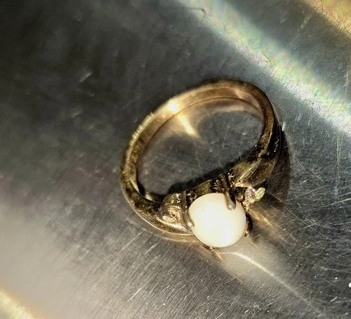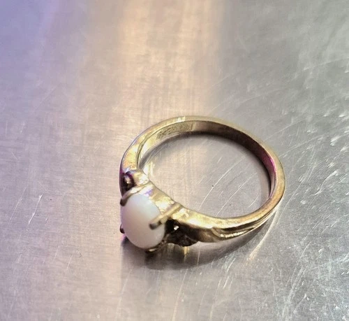 Add a touch of vintage charm with this handcrafted-style ring featuring a luminous white oval stone—moonstone or possibly opal—set in a beautifully detailed band. Available in two finishes: antique silver and warm gold-tone (see separate posting)