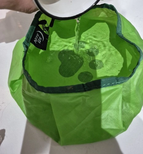 103Nite Ize RadDog Lime Collapsible Bowl will keep your dog hydrated and fed wherever you go with this convenient, packable bowl. Constructed with durable coated nylon, this leakproof bowl can hold up to 16oz of water or food. Whether you're camping, on a hike, or out on the town with your dog, this collapsible bowl is small enough to store almost anywhere. This nylon bowl weighs less than an ounce, packs down to the size of a pack of gum, and includes a plastic S-Biner MicroLock so you can easily clip it for convenient, hands-free carrying. Features: Made from durable, coated nylon Holds water or food Convenient, foldable design Ultra lightweight - weighs less than an ounce Leakproof Built-in elastic storage loop Clip it to your backpack or belt loop using included plastic S-Biner MicroLock Specifications: Capacity: Food: 453g (16oz) Water: 473ml (16oz) Dimensions: 19.9cm L x 8cm W x 19.9cm H (7.87" L x 3.15" W x 7.87 H) Product Details: Pet Type: Dog Product Type: Travel, Bowls Material: Plastic, Nylon
