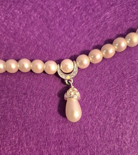 - Faux pearl strand with adjustable chain clasp