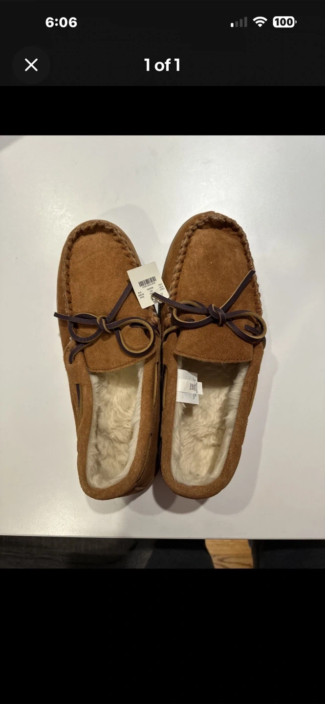 Cozy up with these UGG moccasin slippers! They feature a classic design with a suede exterior and a plush, warm lining. Perfect for keeping your feet comfortable around the house
