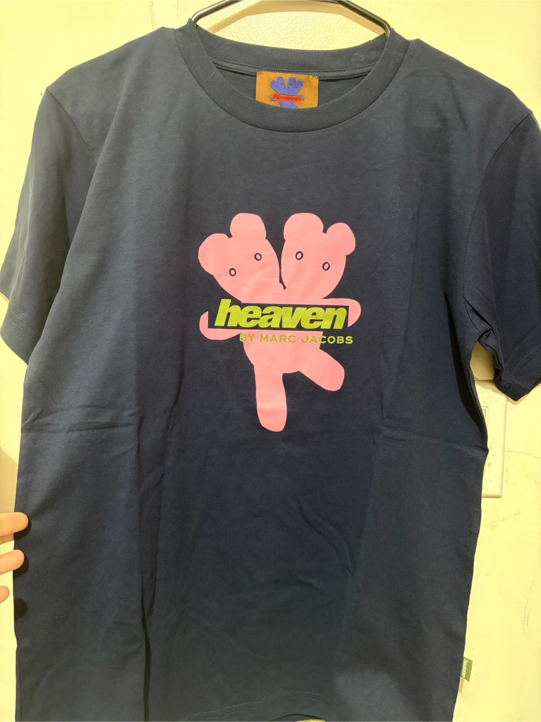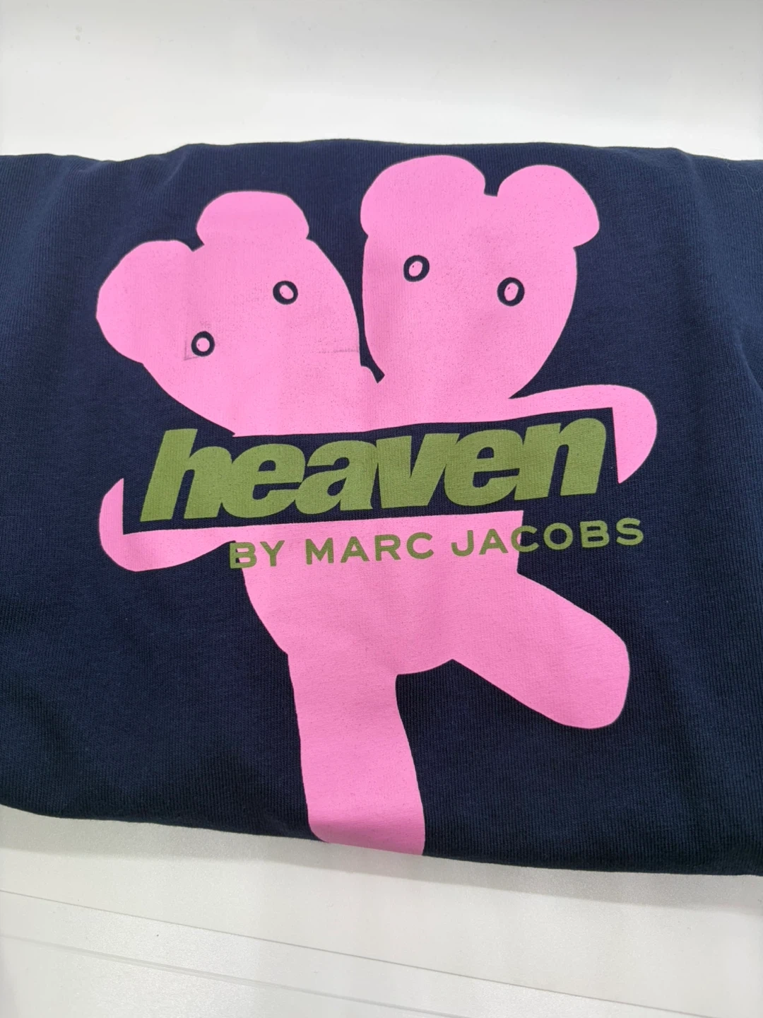Heaven by Marc Jacobs T-shirt with a unique design! The shirt is a dark blue color with a pink graphic. New with tag, unisex.