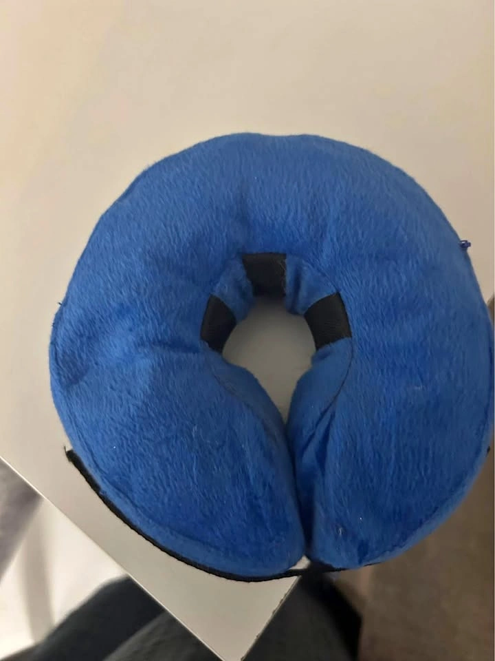 Cone inflates or deflates as needed. Has Velcro to adjust the size around your cat’s neck and there is a zipper to remove the cover and wash.