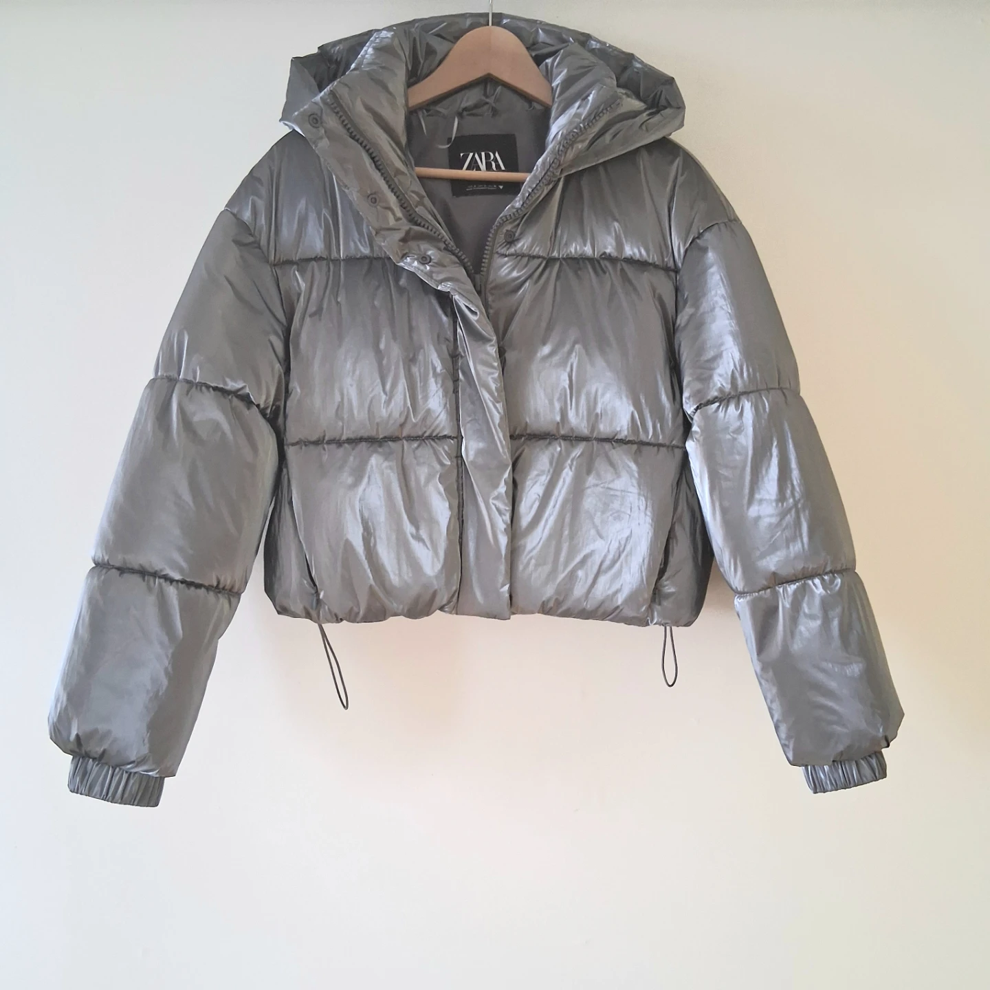 Zara Silver Puffer Sz S, Fits M