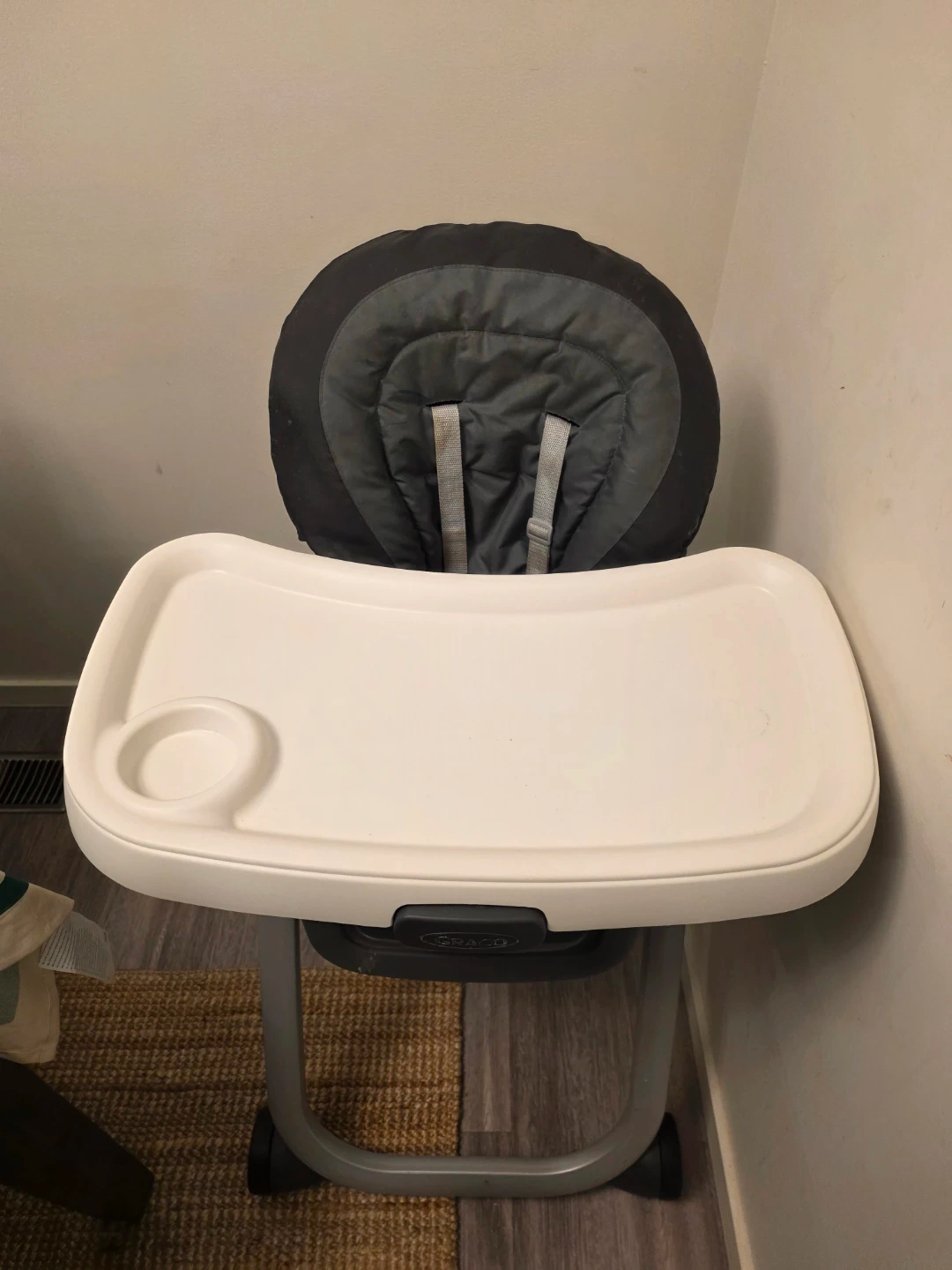 Ideal for your growing family, the Graco DuoDiner DLX 6-in-1 Highchair offers 6 growing stages from infant highchair to seating two kids at once. The highchair features infant body support and 3 recline positions for early mealtime comfort and is fully-featured with a self-standing fold and 5 height positions to match dining table height. Its modern, fresh design includes soft fabrics, a cozy seatpad and sleek, dishwasher safe compact tray insert for the easiest cleanup possible.