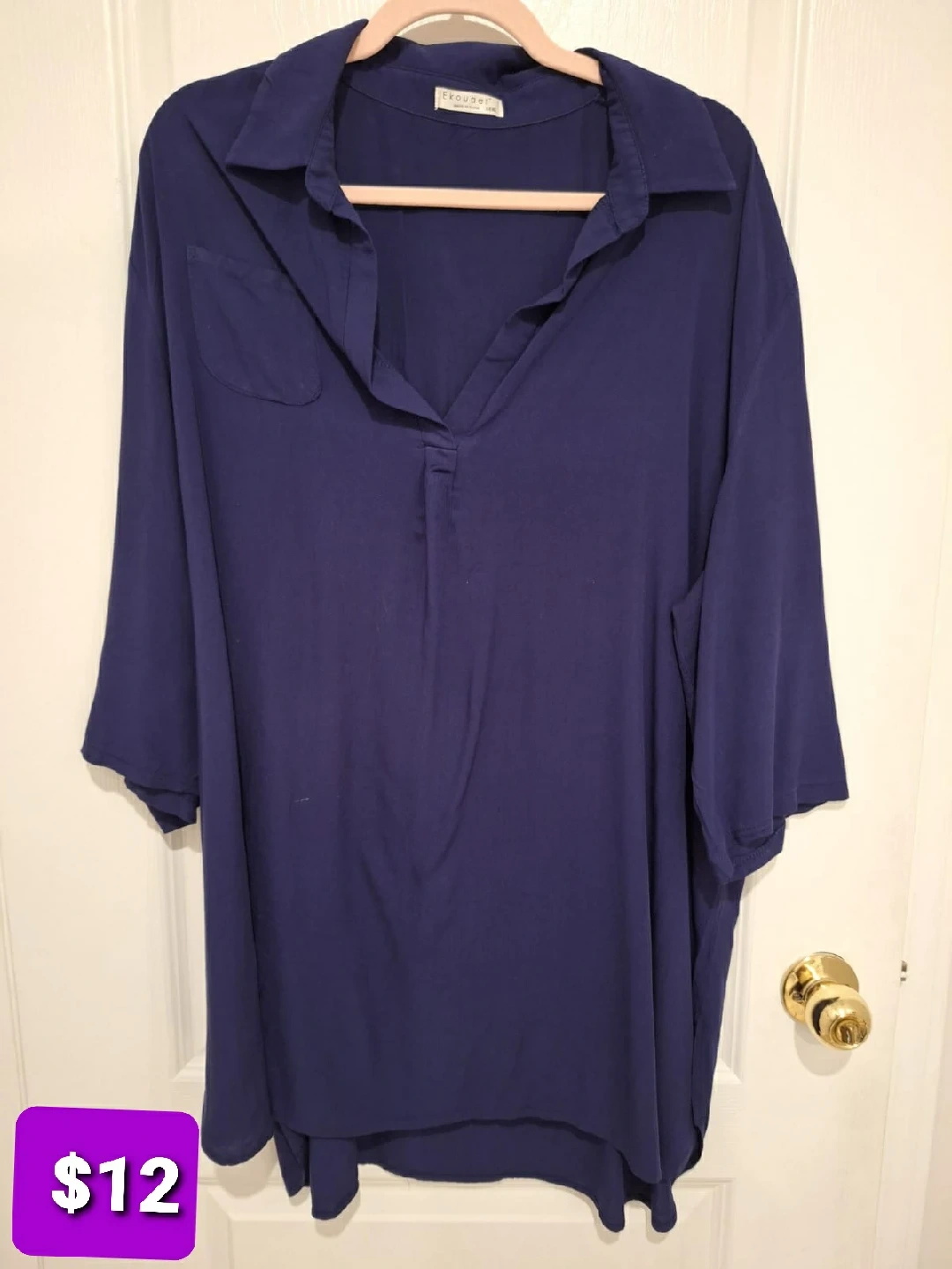2 Ekouaer brand shirts / blouse. Purchase from Amazon 2 years ago but was too large. I used only the green one 1-2 times. Very comfortable soft material 100% Rayon. The back of the shirt is longer than front so offers a good coverage. 3/4 sleeve which can be rolled up with a strap.