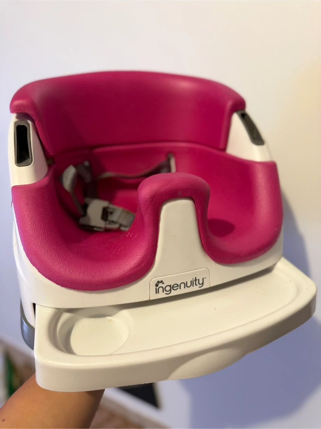 Selling an Ingenuity Baby Base 2-in-1 seat in pink! It's in great condition and ready for a new home. Perfect for helping your little one sit up and enjoy meal times.